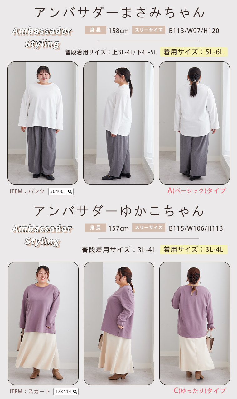 ※全タイプ、長袖と半袖は袖丈、袖口周りだけが違います。