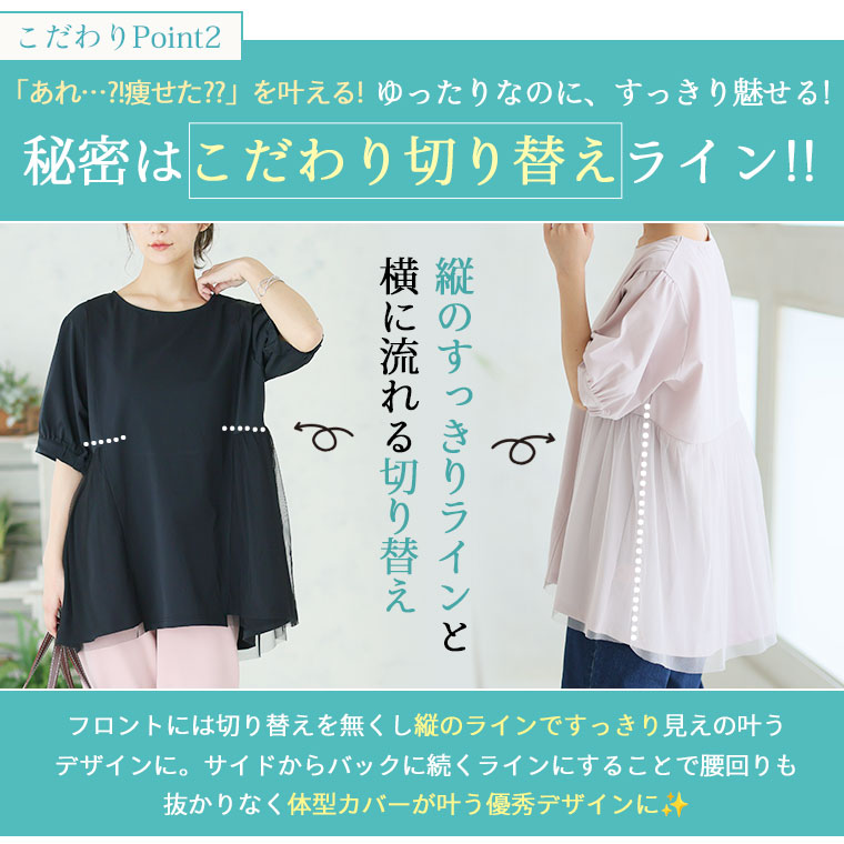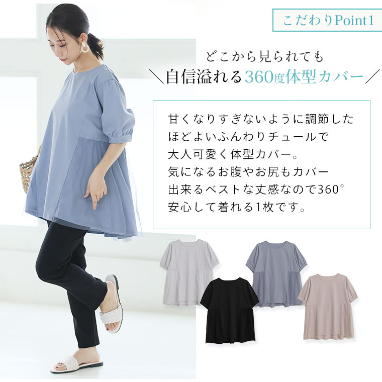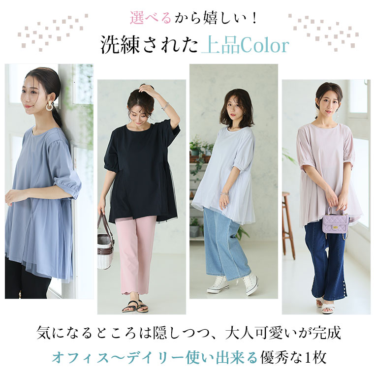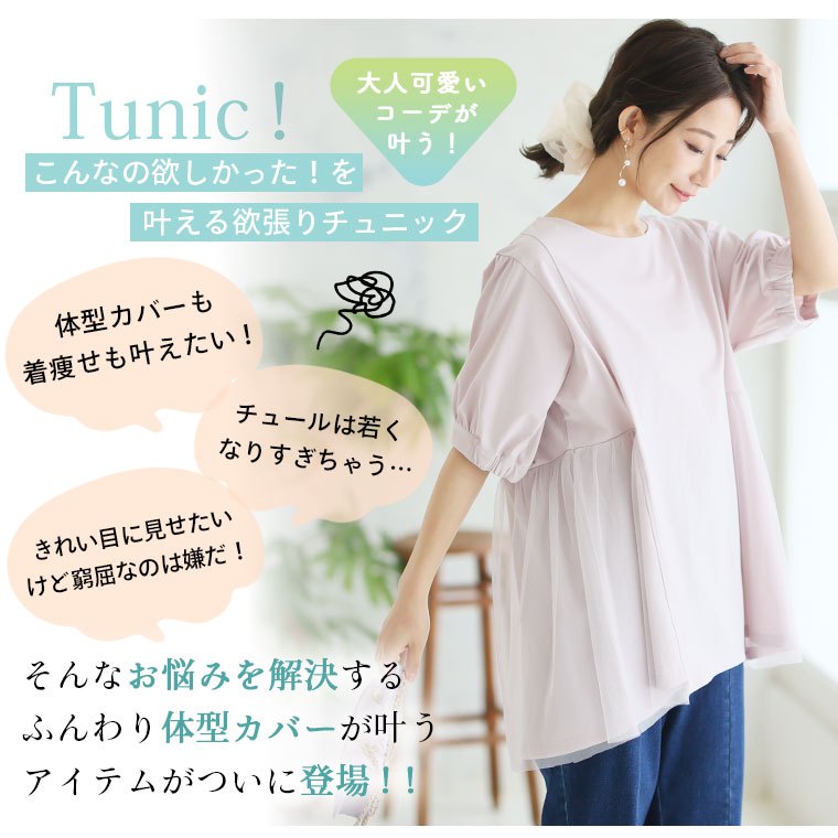 上品感と着心地の両立を叶えられる大人可愛い ふんわり チュール チュニック
