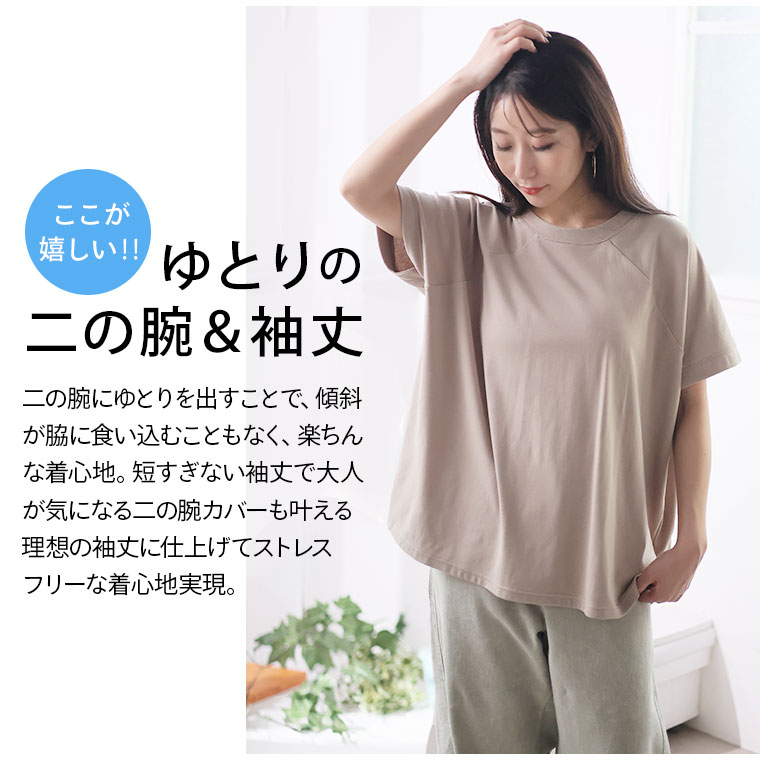 ボディラインを拾いにくく、透けにくい。素肌に安心な優しい肌触りの心地よい綿フライス