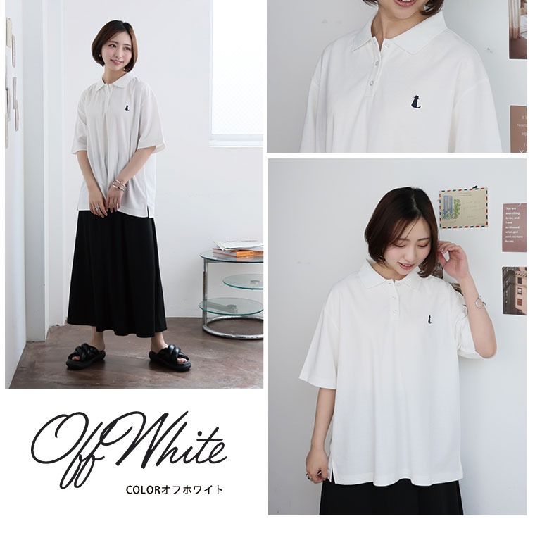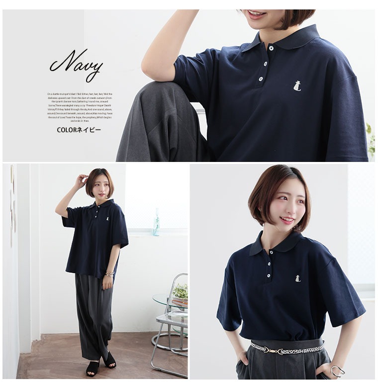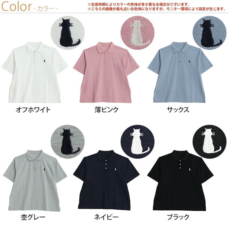 お仕事にも普段着にも使えるにゃんこ刺繍、襟付きポロシャツ