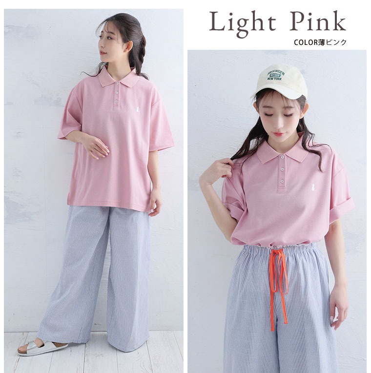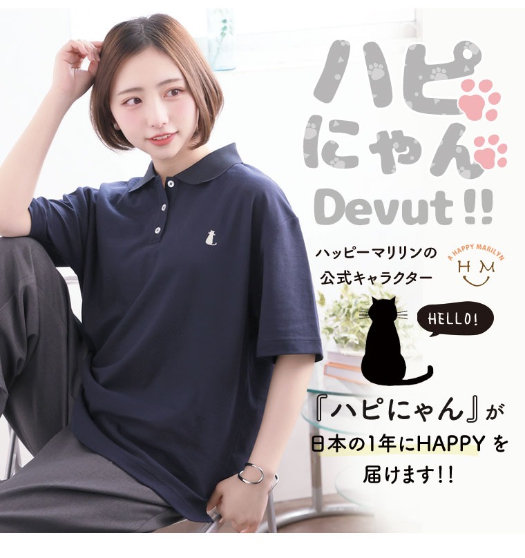 はぴにゃん刺繍が可愛い!ポロシャツの定番の素材を使用し、 さらりと軽く快適な着心地が叶います