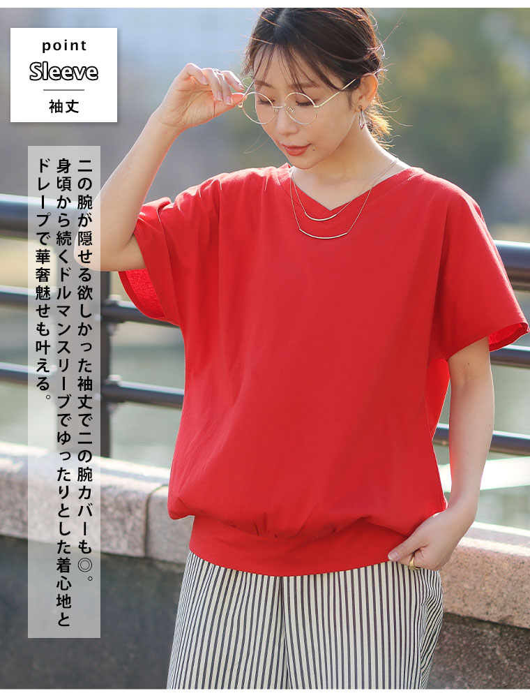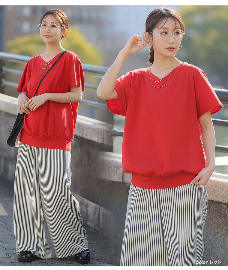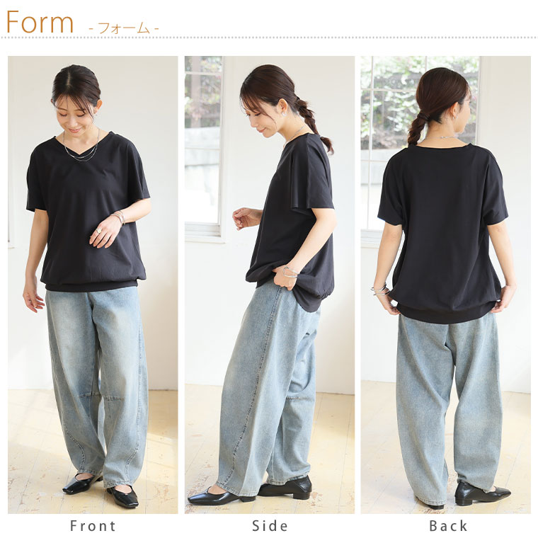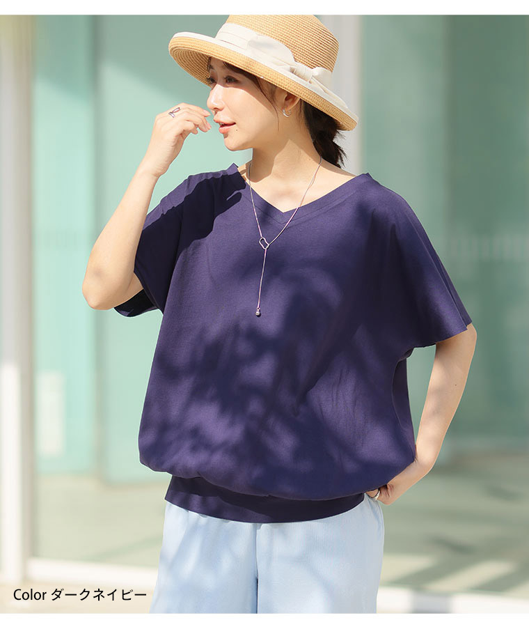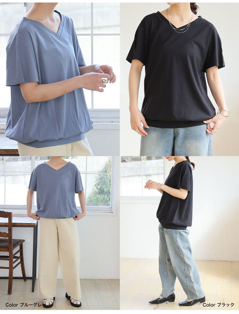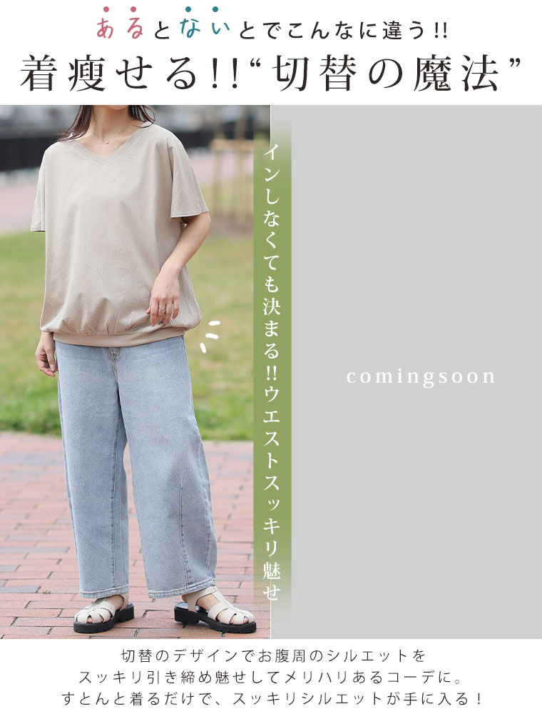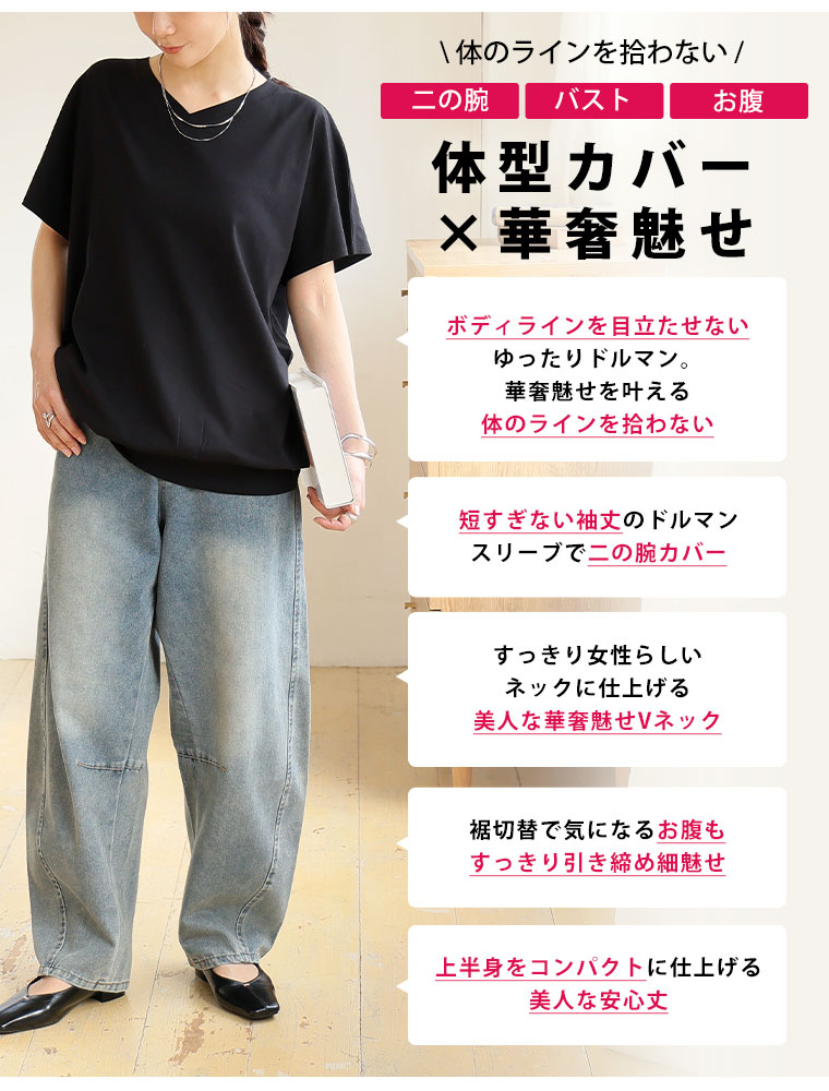 シャープなVネック×切り替えデザインで細魅せ叶える万能トップス