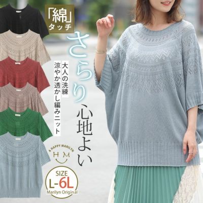 さらりと心地よい 涼やか 透かし編み コットンタッチ 華奢魅せ 切替 ドルマンニット 1,500円(税込)