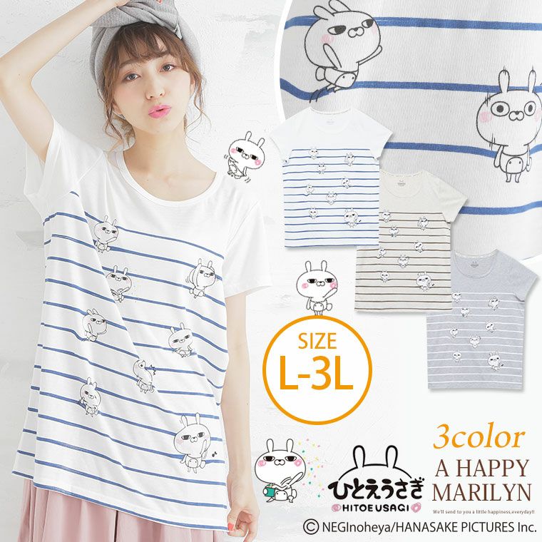 シンプルなボーダー柄にポップなプリントをあしらった ひとえうさぎプリント半袖チュニック