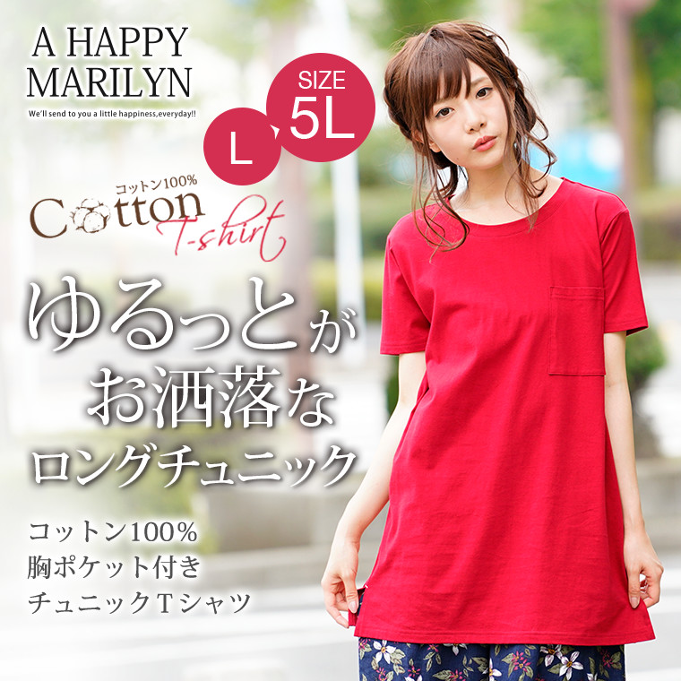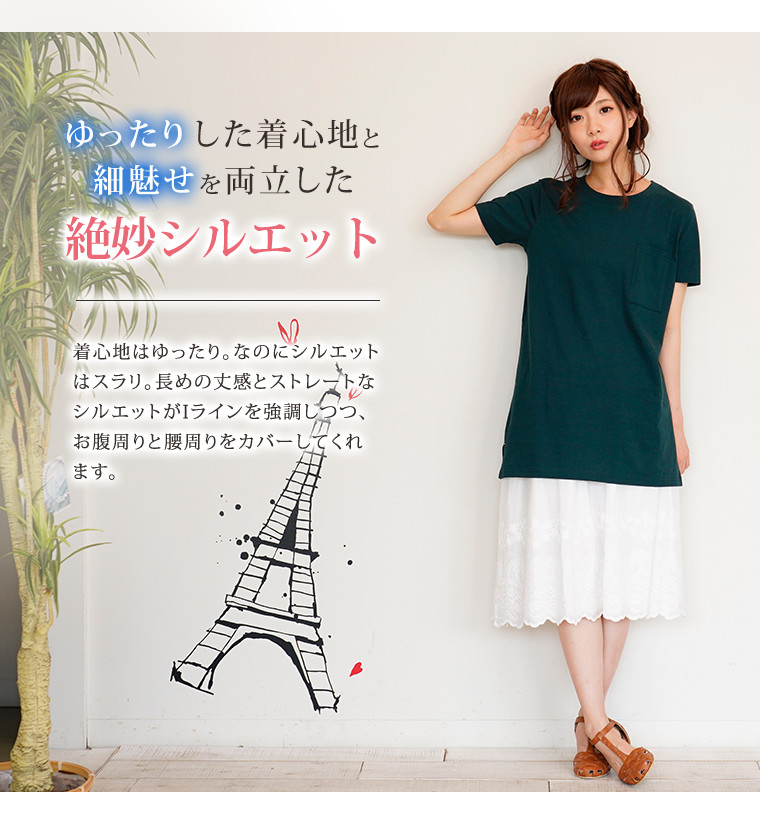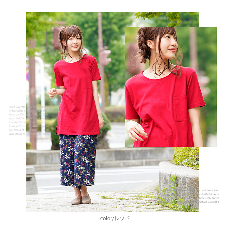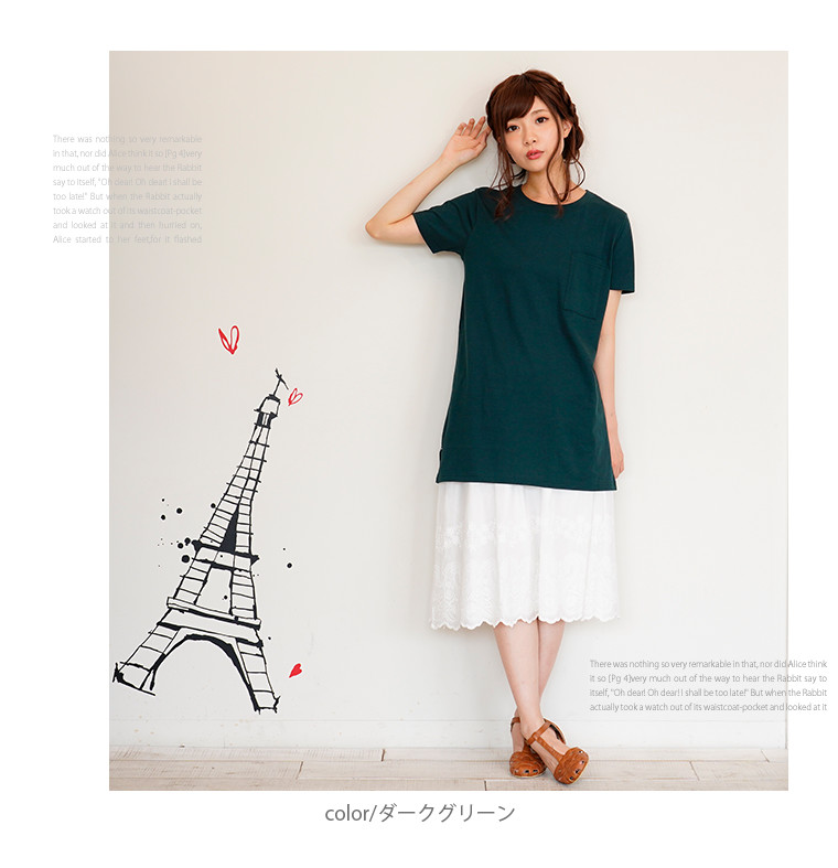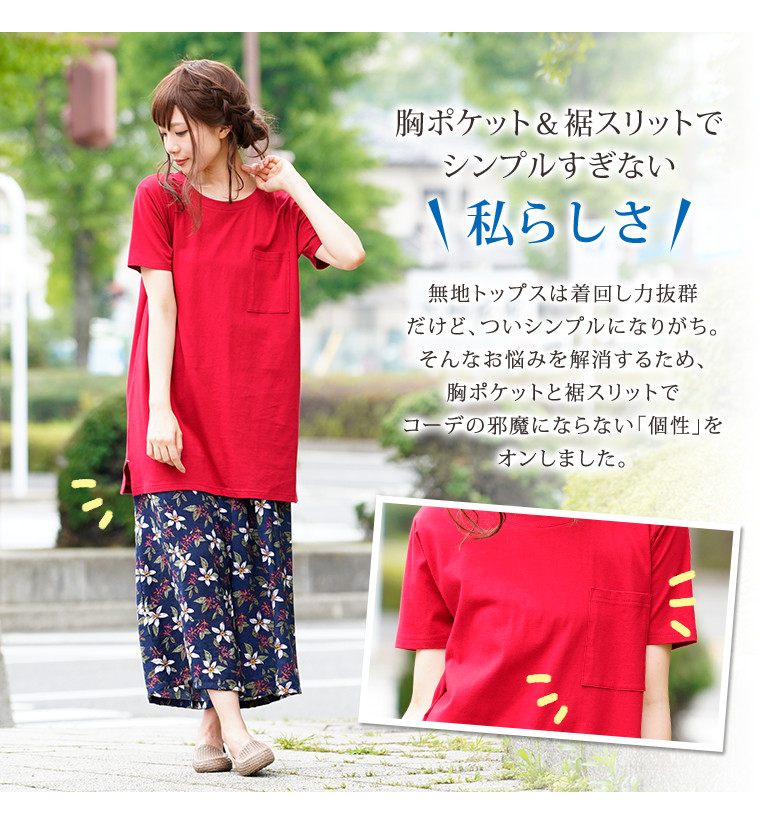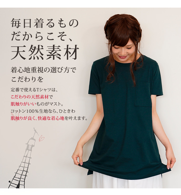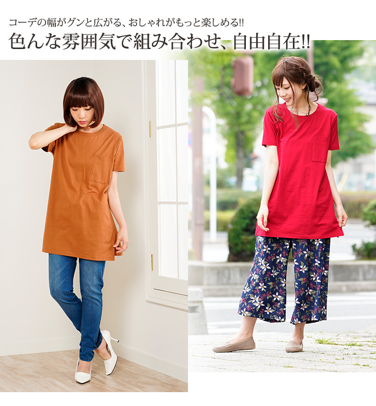 胸ポケットがアクセント♪シンプルになりすぎないチュニックTシャツ