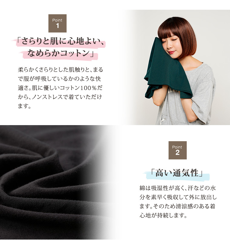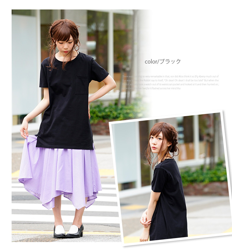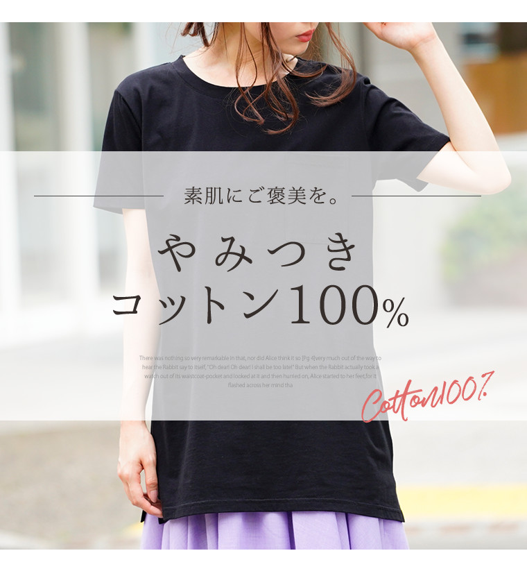 ドロップショルダーで着心地ゆったり。裾スリット入りでもたつきません