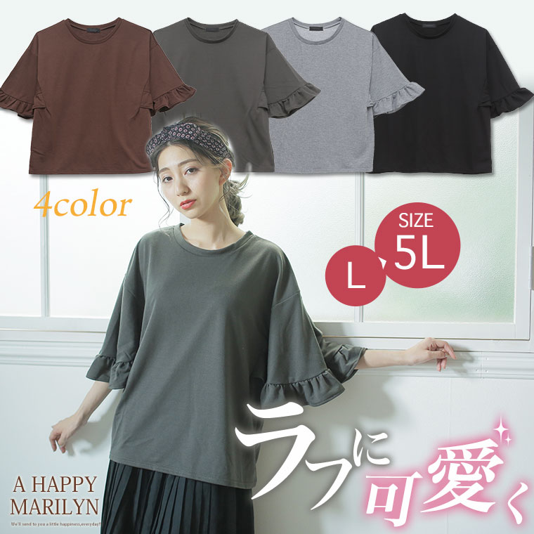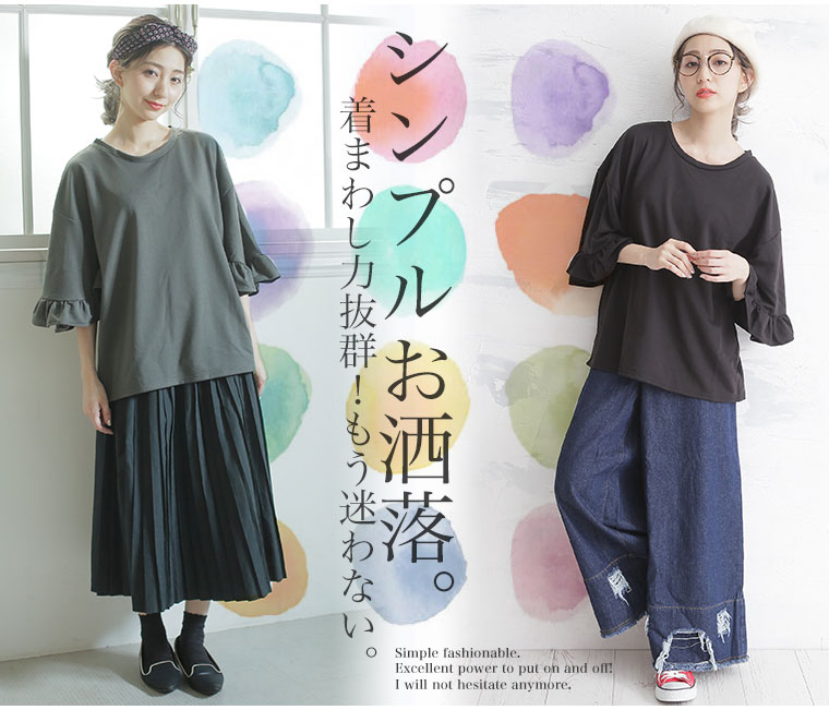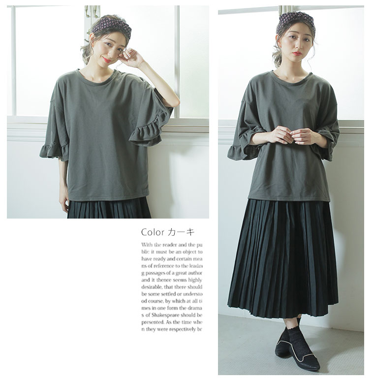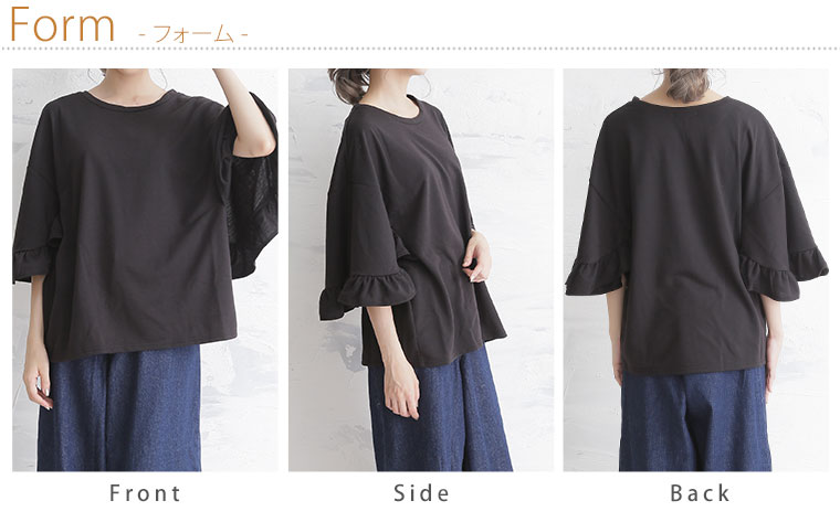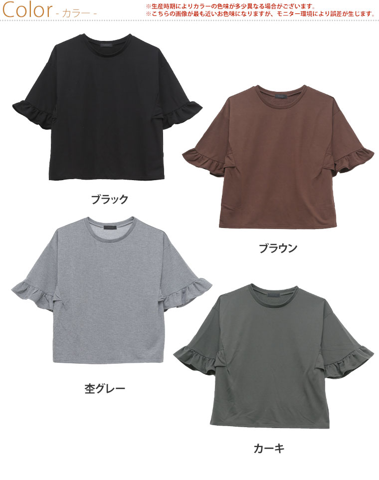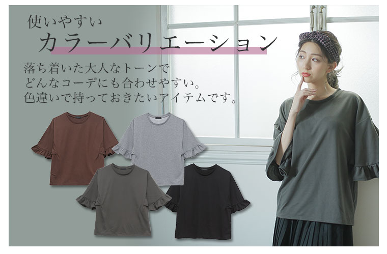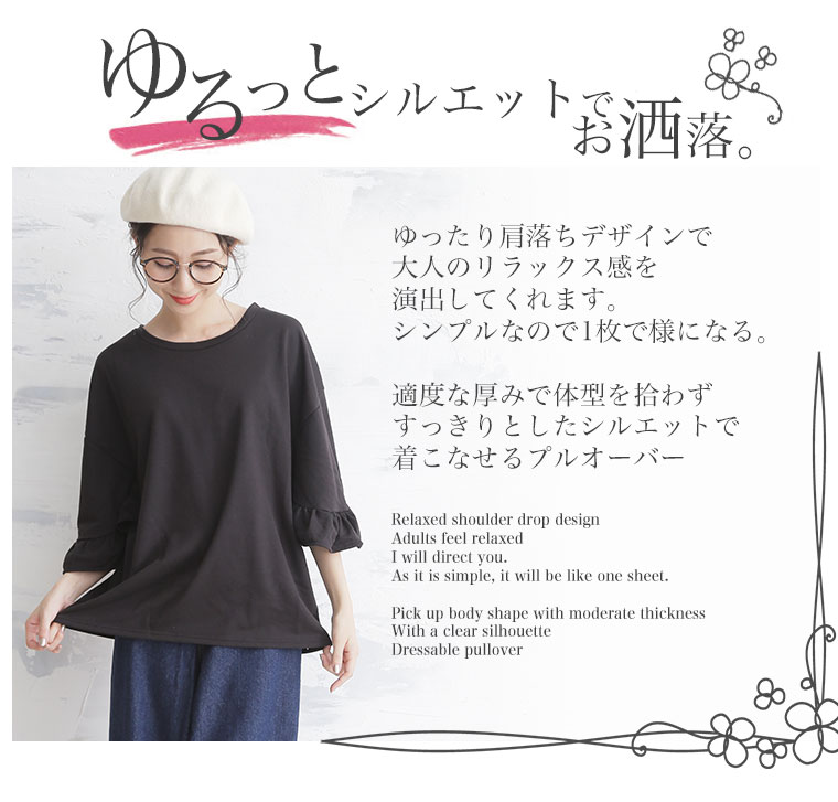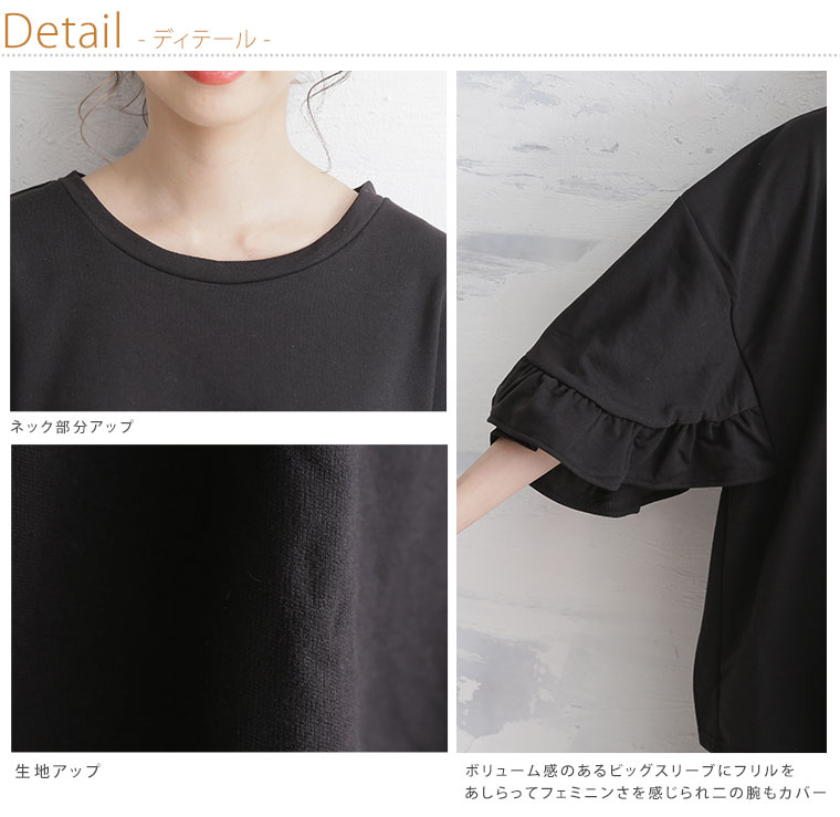 ボリューム感のあるフリルビッグスリーブがカジュアルすぎずフェミニンに。ミニ裏毛半袖プルオーバー