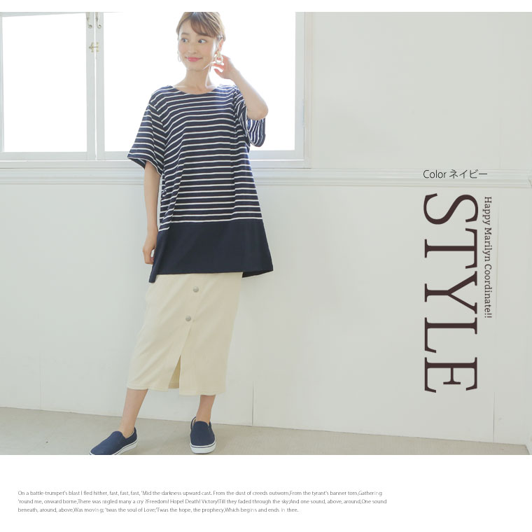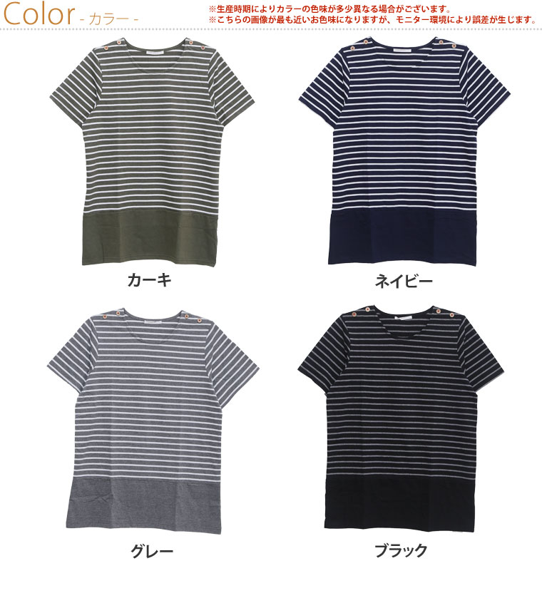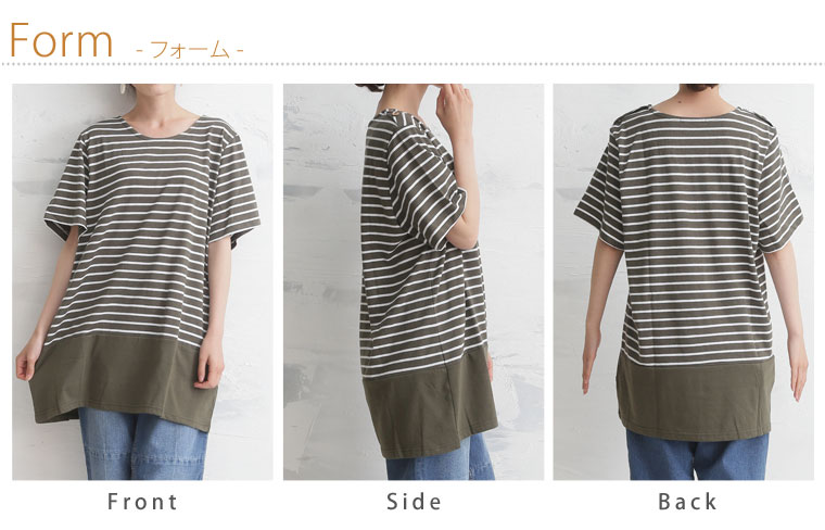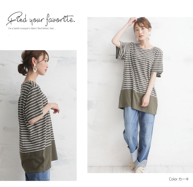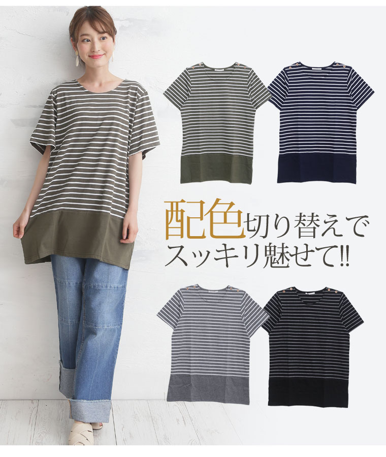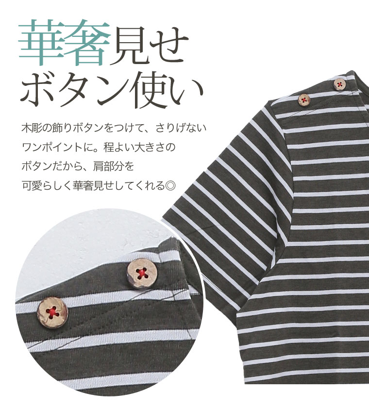 肩ボタンがアクセント!!ボーダー切り替えのカジュアルプルオーバー
