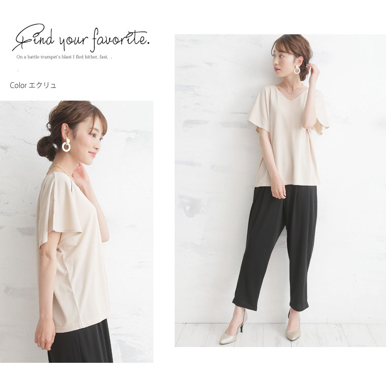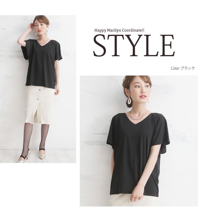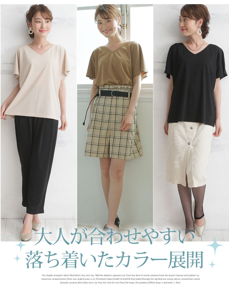 ひらりとしたシルエットで大人のこなれ感を演出。さらっとしたスムース素材で大人っぽい着こなしに。