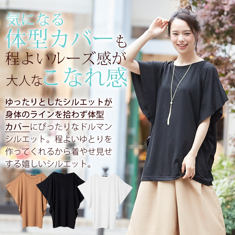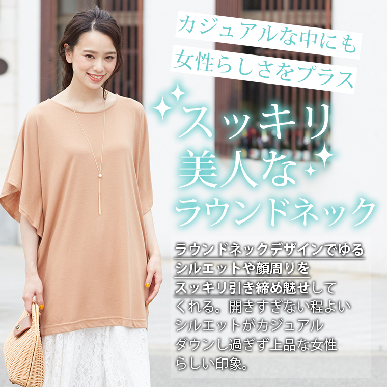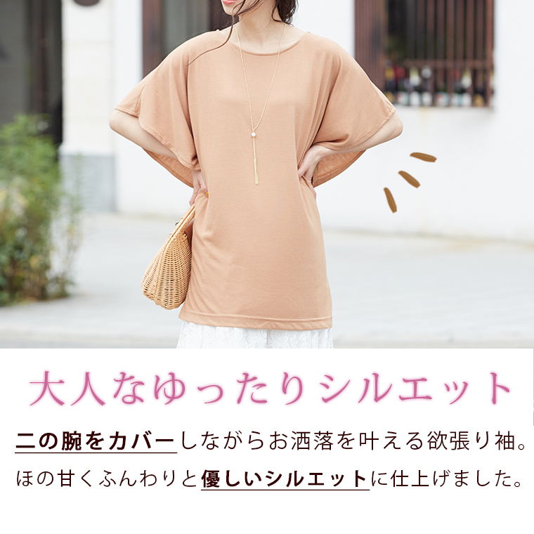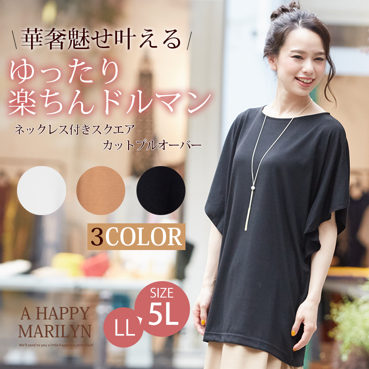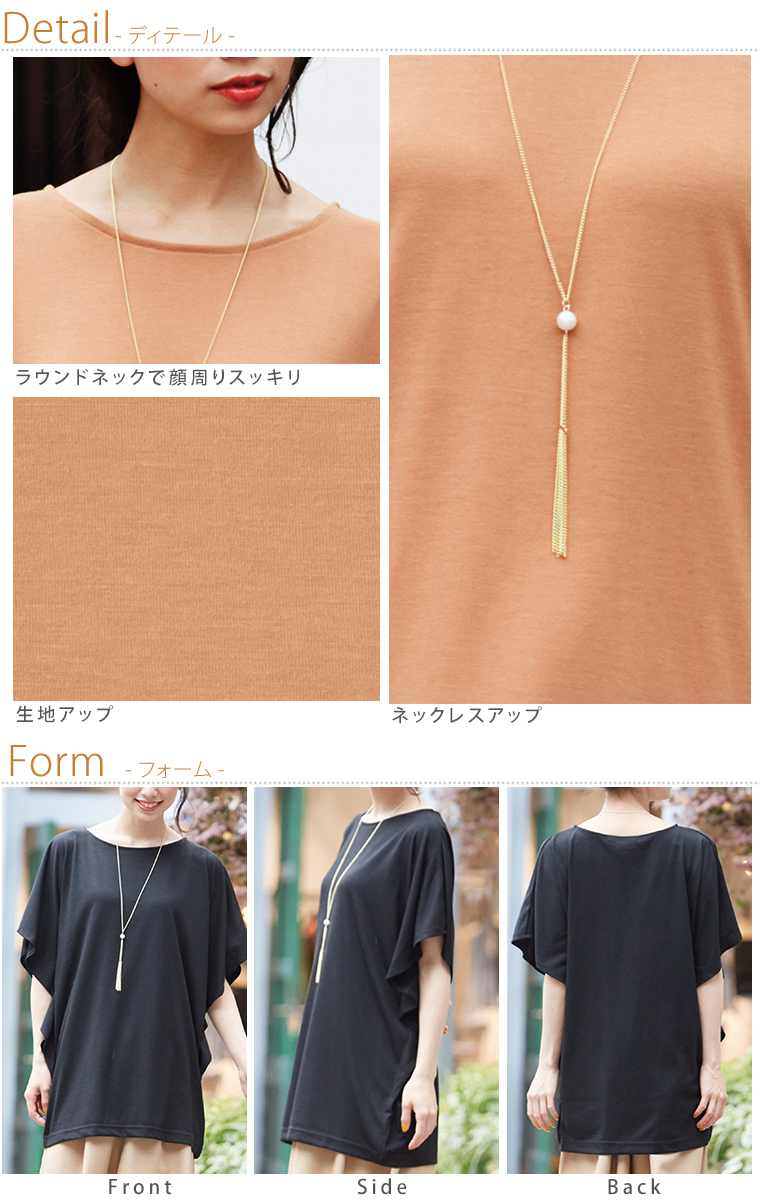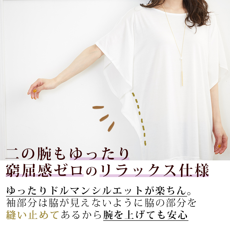 ゆったり楽ちんドルマンネックレス付スクエアカットプルオーバー