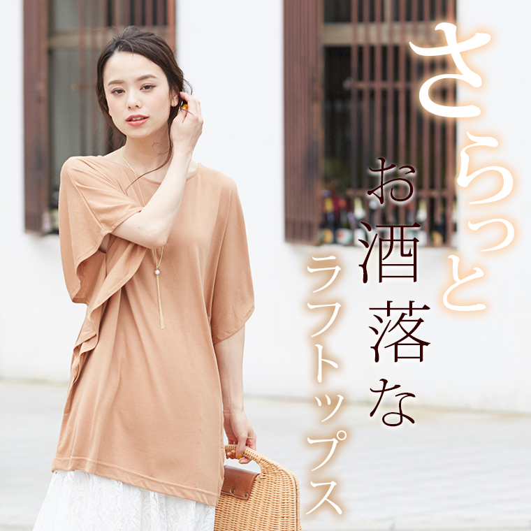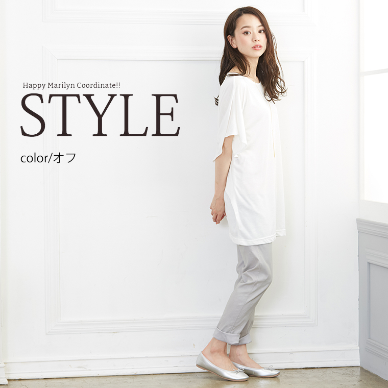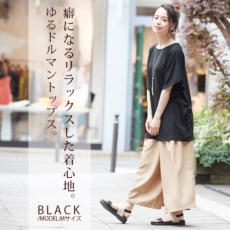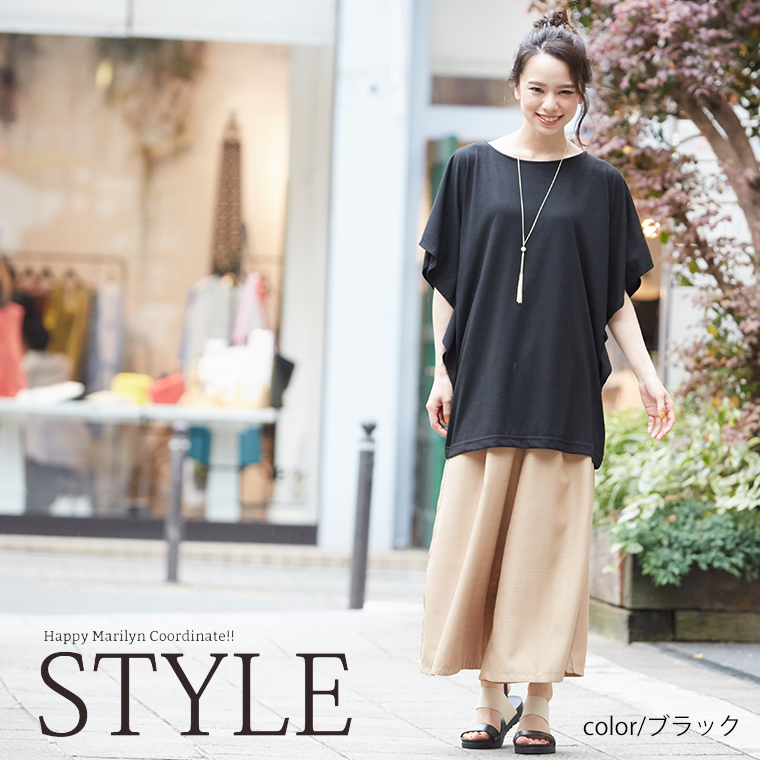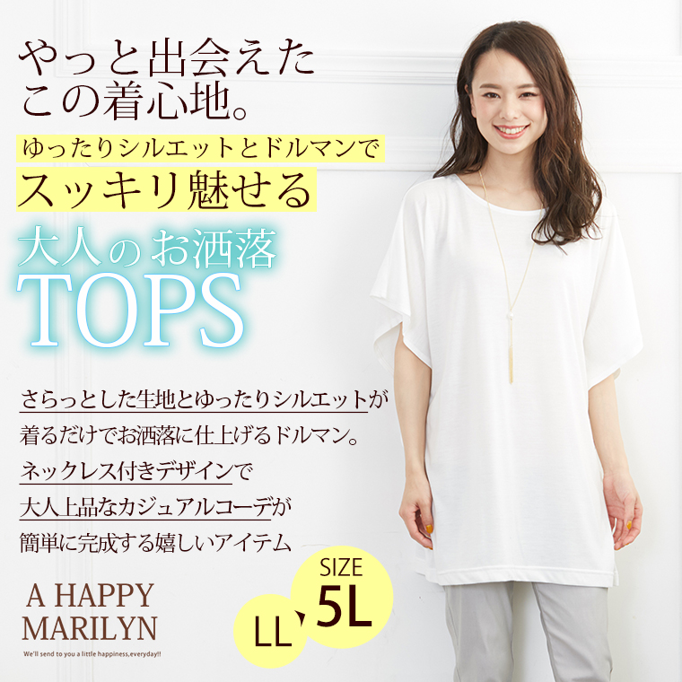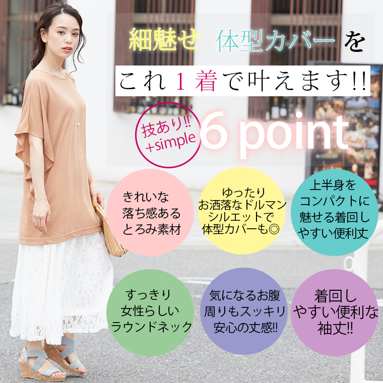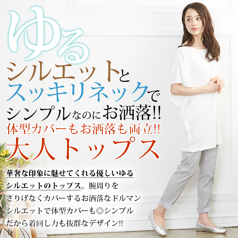 ゆったり楽ちんドルマンネックレス付スクエアカットプルオーバー