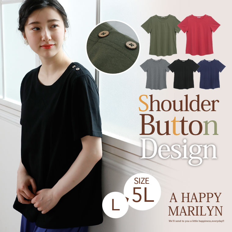 トップス Tシャツ ティーシャツ カットソー LL 3L 4L 5L 夏 夏物 夏服 夏用 ぽっちゃり かわいい おしゃれ カジュアル ナチュラル 肩ボタン ベーシック 半袖 Tシャツ【メール便可1】