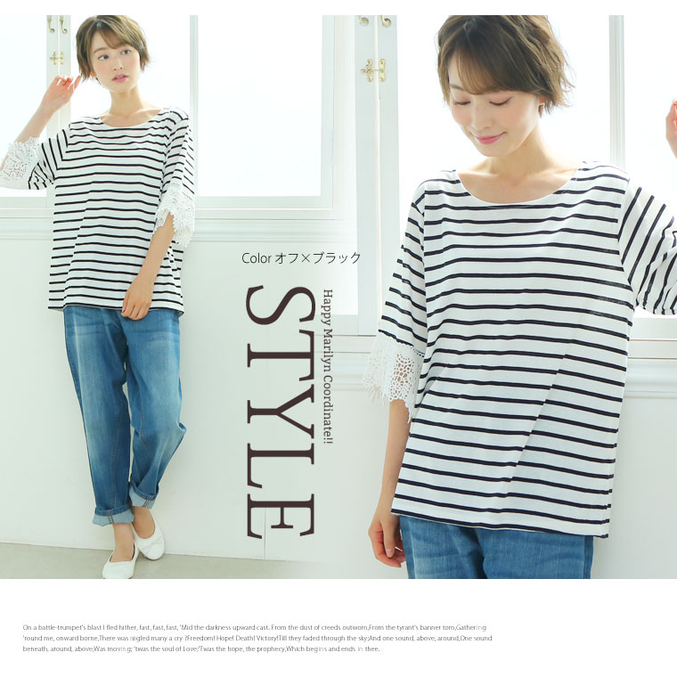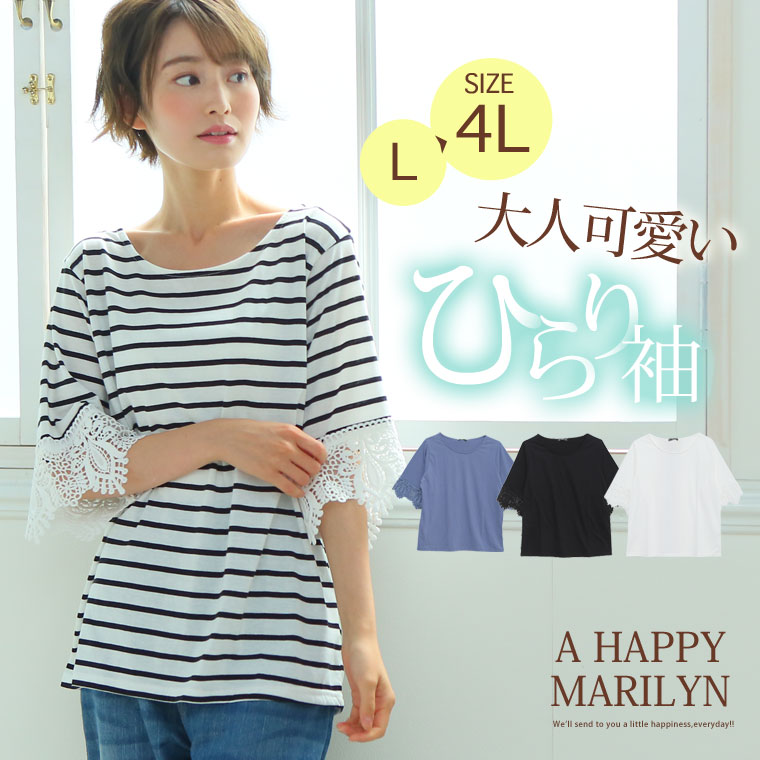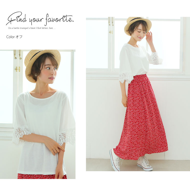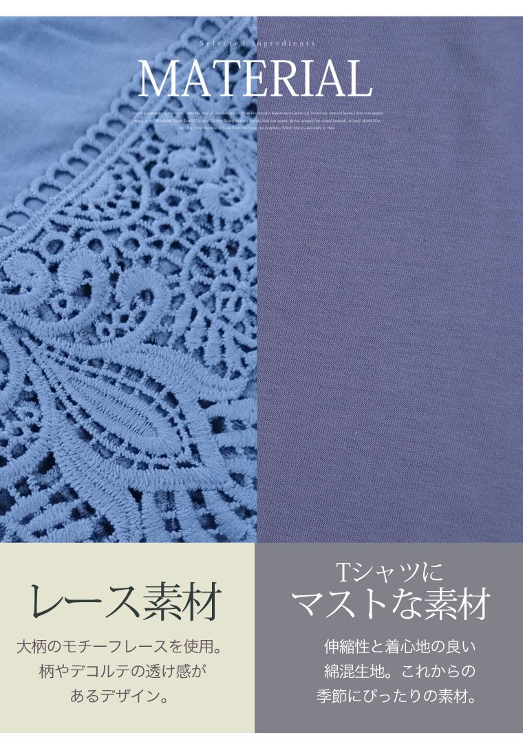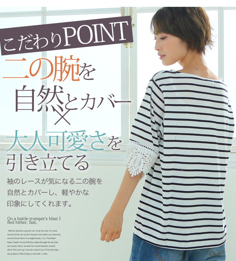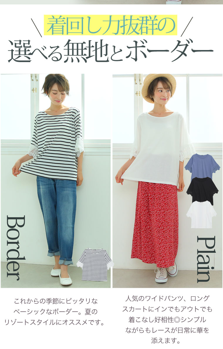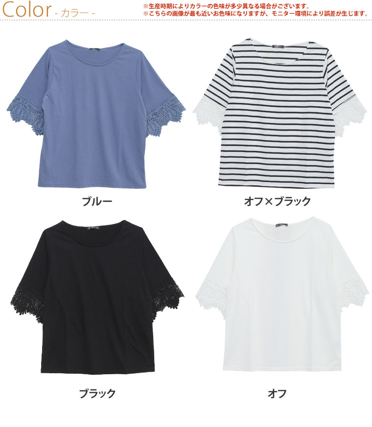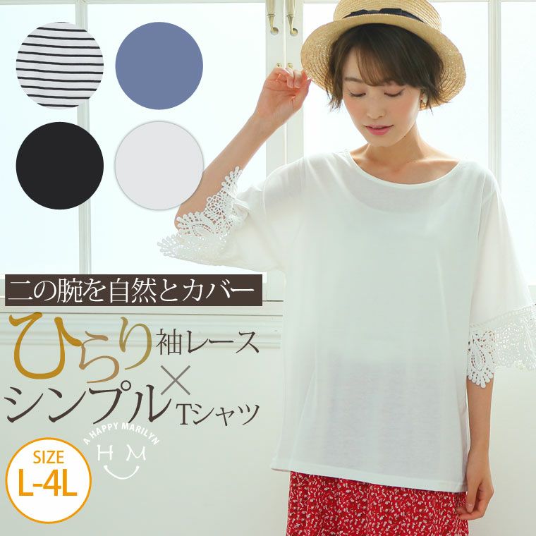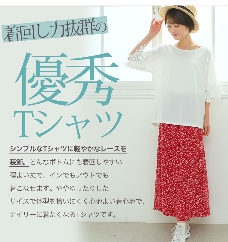 すっぽりとしたゆったりサイズで体型カバー◎袖口レースのひらりTシャツ