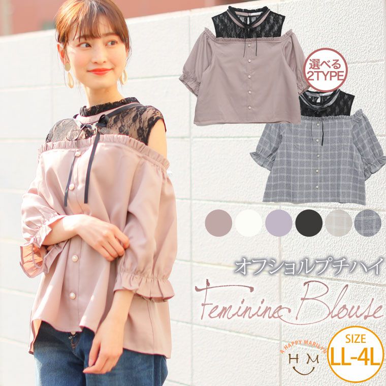 無地と柄が選べる!上品美人なレース切替五分袖プチハイオフショルプルオーバー