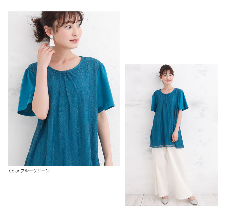 カットソー素材 モチーフレースプルオーバー
