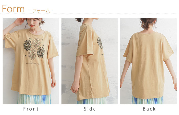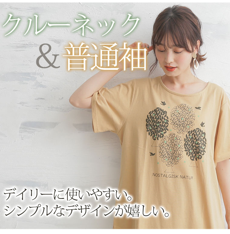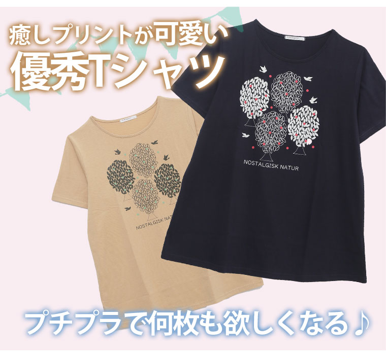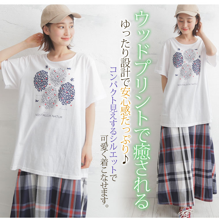 ナチュラルで可愛いプリントのウッドプリントTシャツ