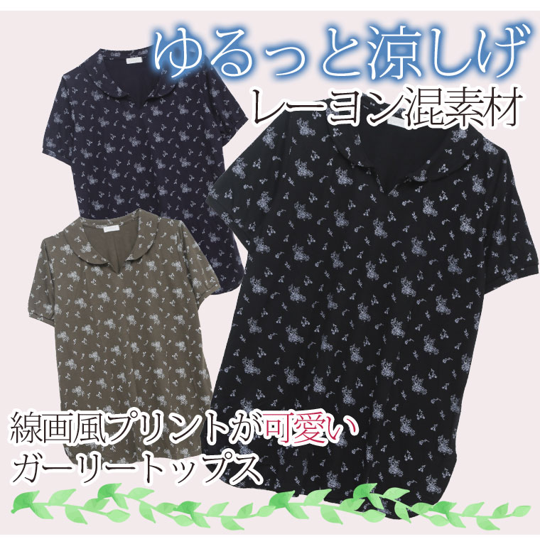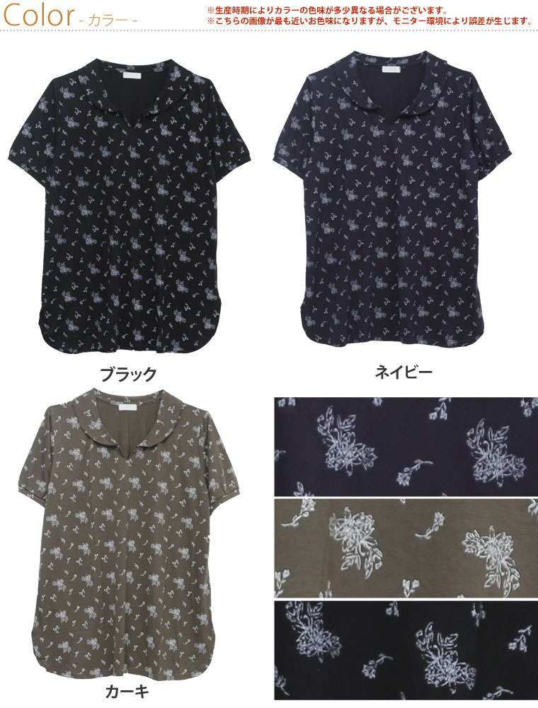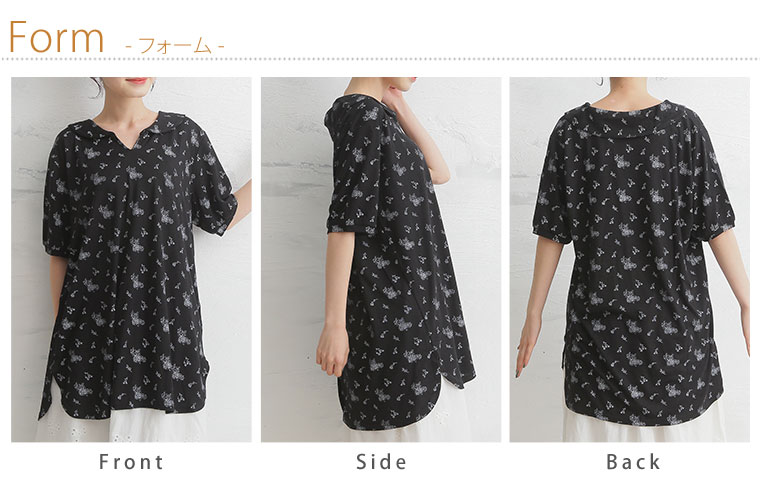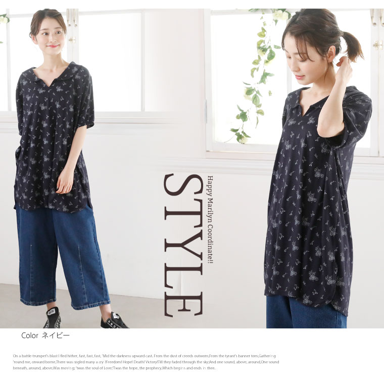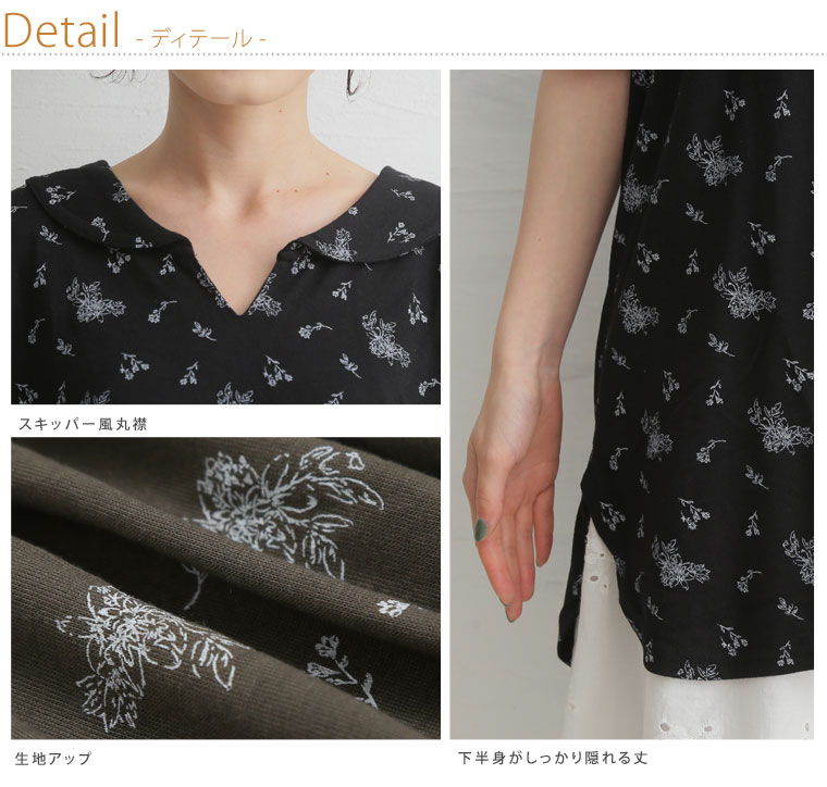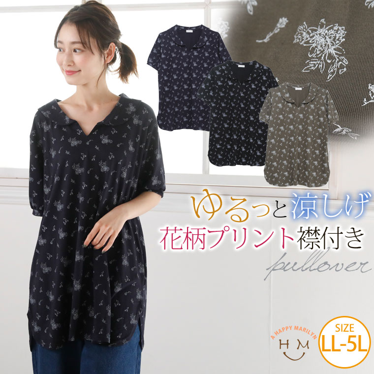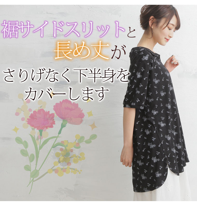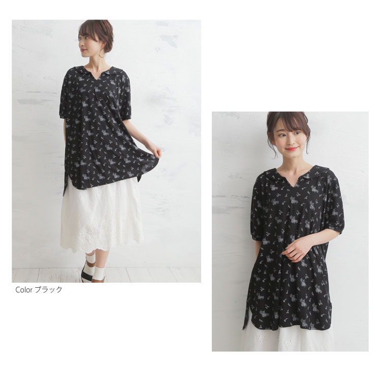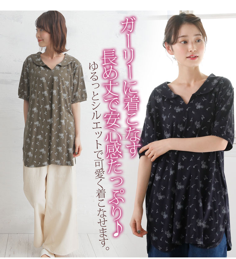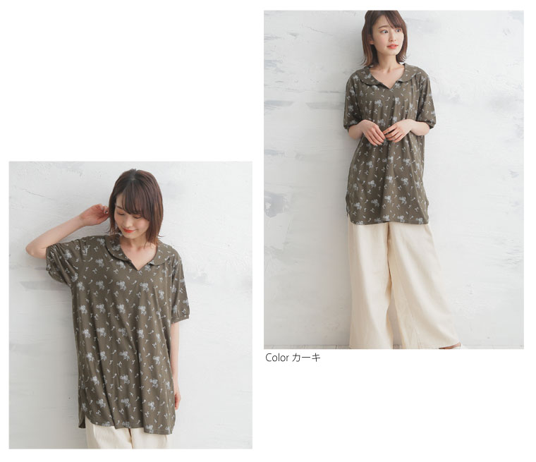 安心の丈感♪花柄プリント襟付きプルオーバー