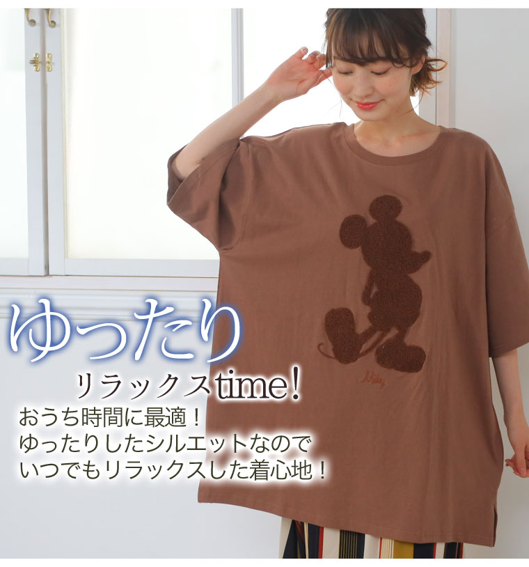 大きなミッキーの刺繍が可愛い♪ゆったり楽ちん素材で家でも外でも大活躍◎