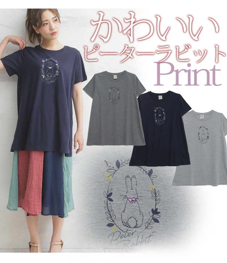 繊細で上品なピーターラビットのイラストが可愛い♪半袖チュニック