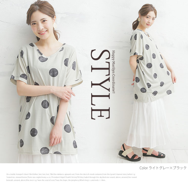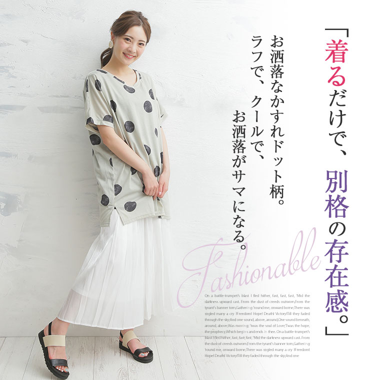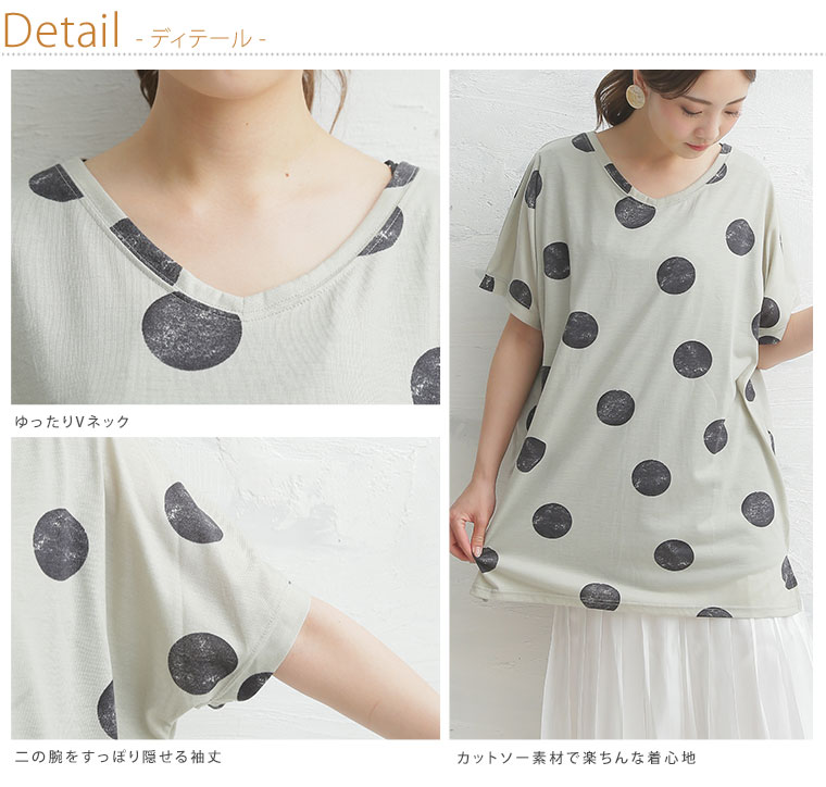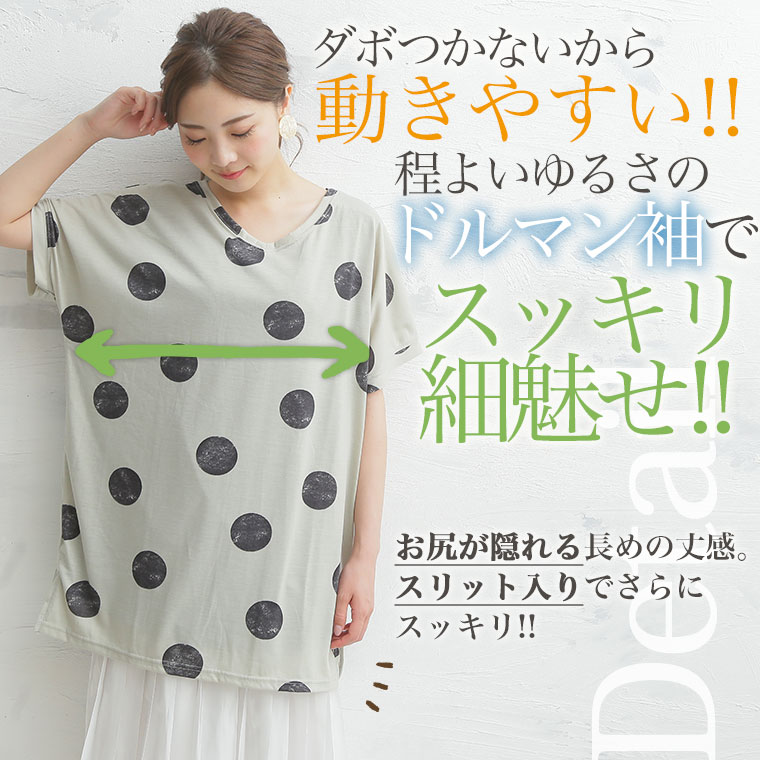視線を惹くお洒落なかすれドット柄で印象的ドルマンチュニック