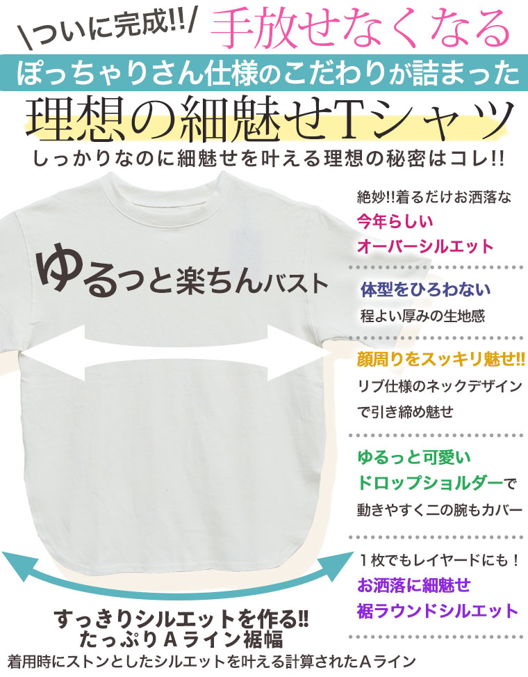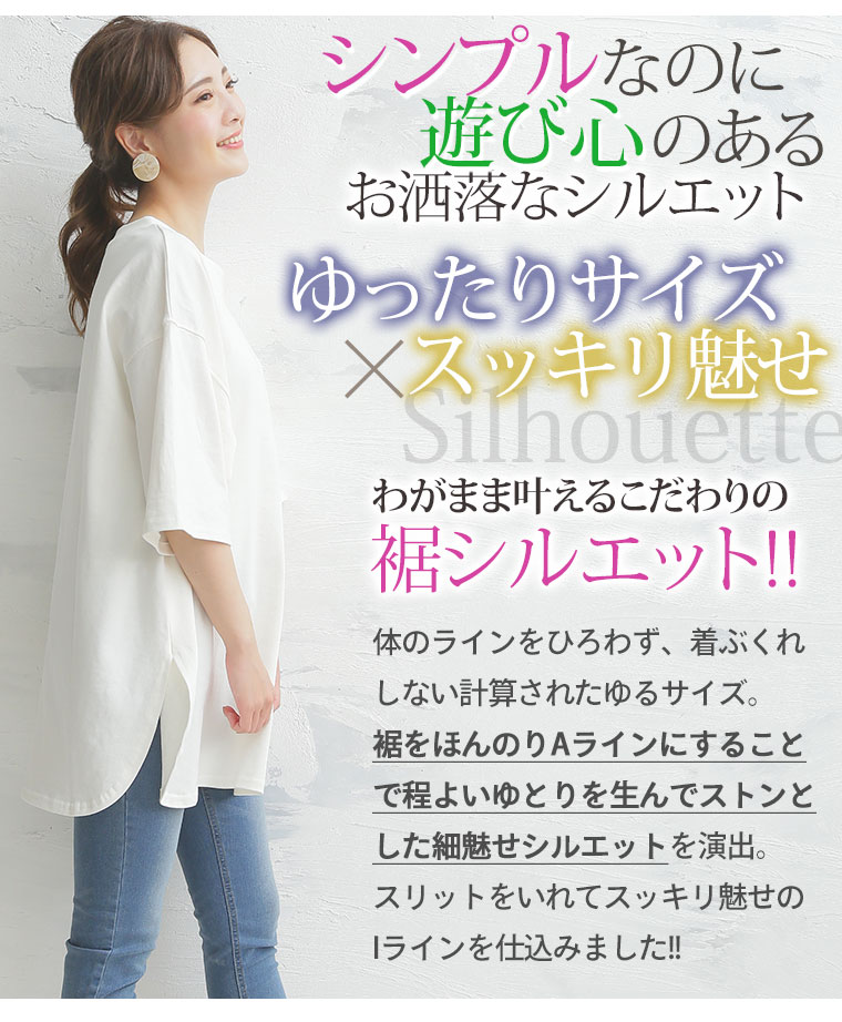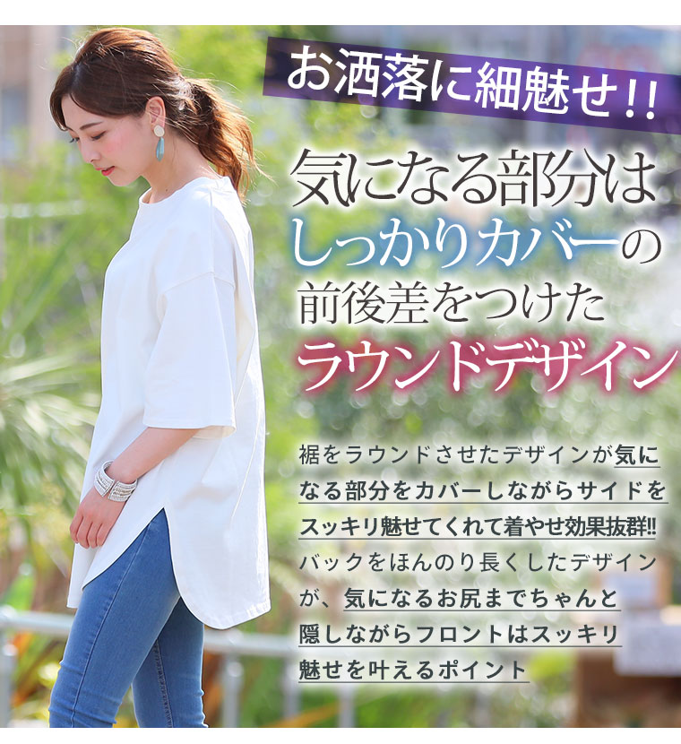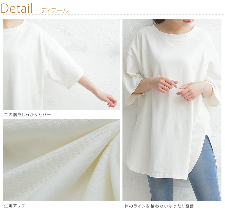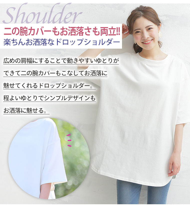 ドロップショルダーと前後差のあるラウンド裾で気になる部分をしっかりカバーする理想のデザイン