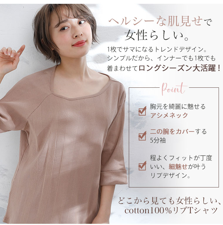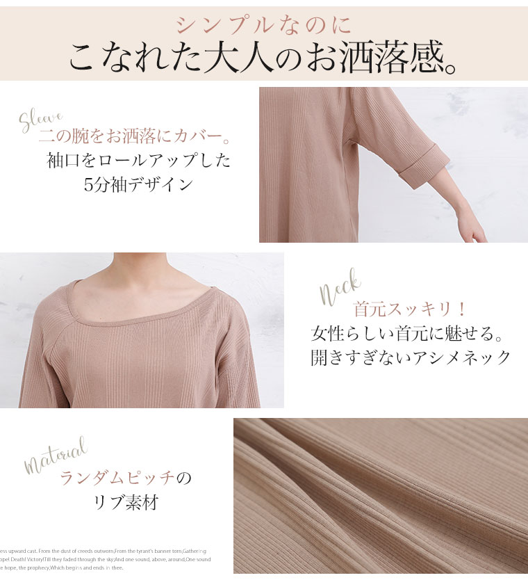 5分袖で二の腕カバー!リブデザインで細魅せが嬉しい