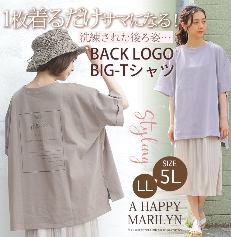 洗練された後ろ姿が楽ちんに完成。バックロゴビックTシャツ