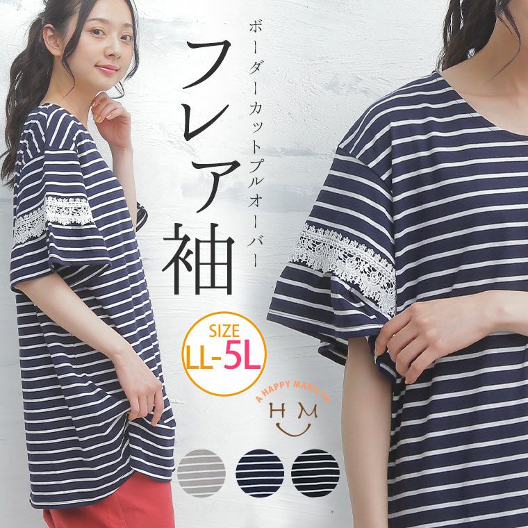 フレアがかわいい 袖レース使いプルオーバー