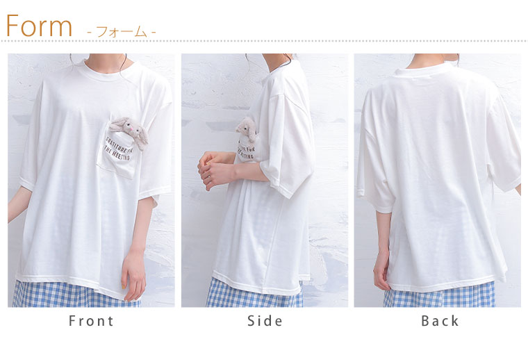 ゆるっとかわいい ぬいぐるみ付き 胸ポケットTシャツ (うさぎタイプ)