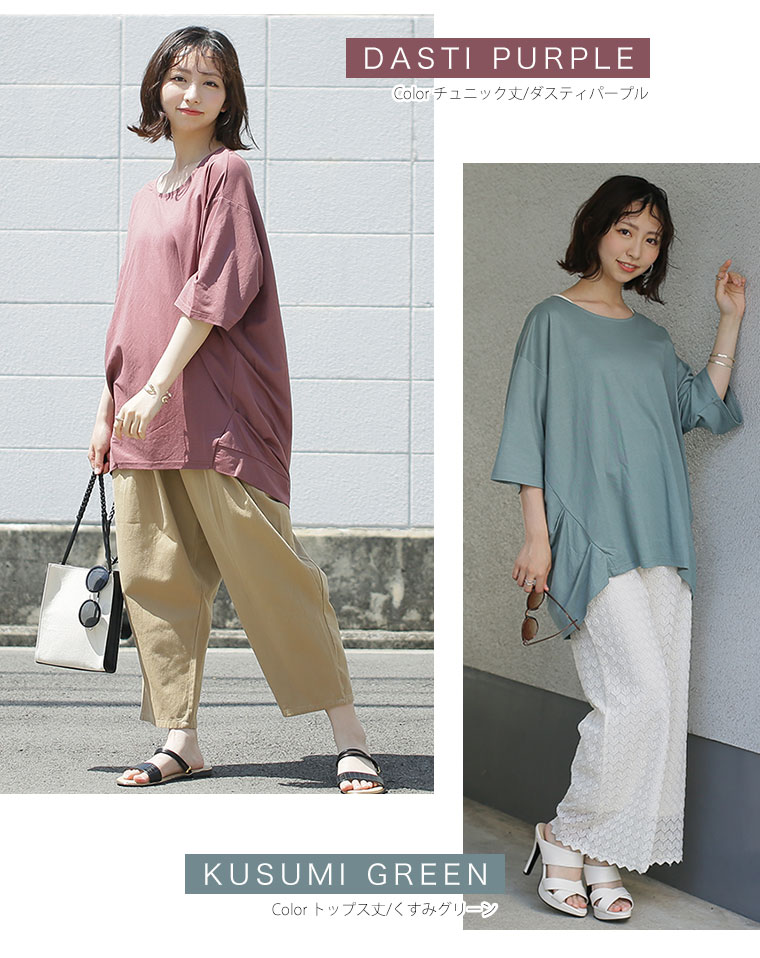 ひんやり接触冷感 選べる2丈 お洒落に体型カバー 裾タックチュニック&トップス