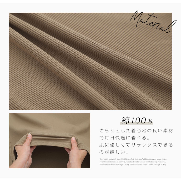 リブ素材でよく伸びます。体のラインも出にくい素材感なのが嬉しいです♪