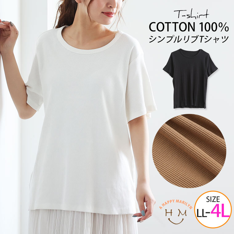 3. 大きいサイズ コンパクト コットン リブ Tシャツ