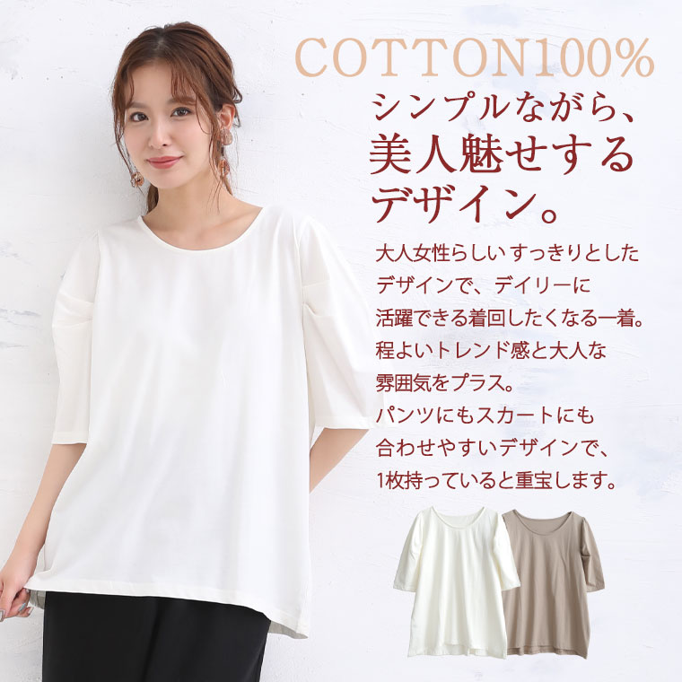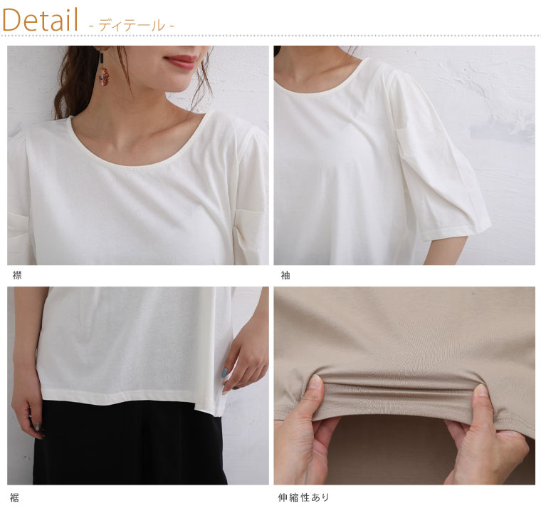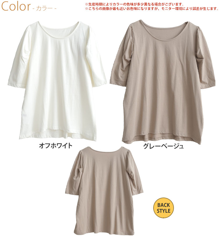 4. 大きいサイズ 綿100% タック パフスリーブ カットソー