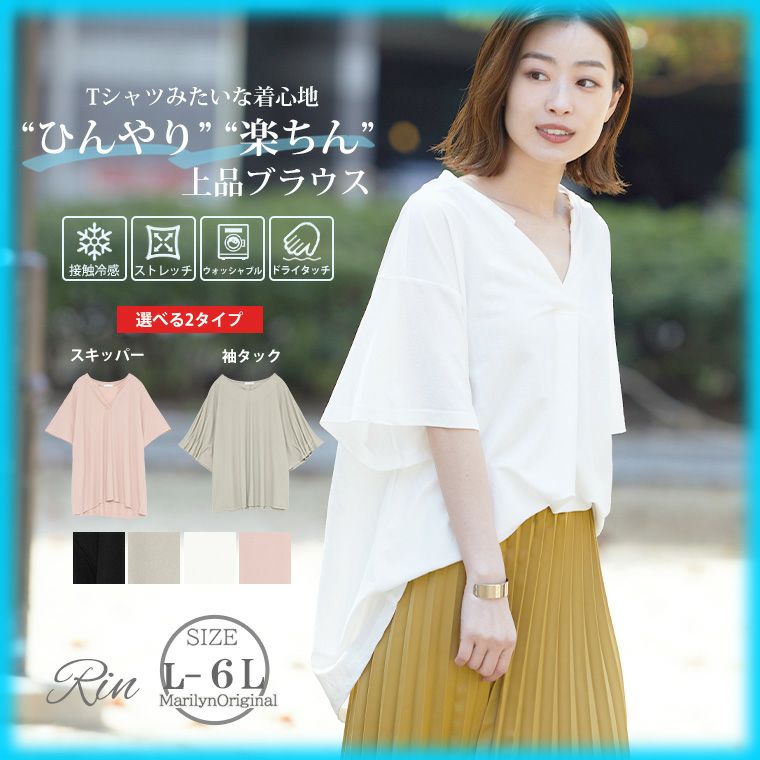 ひんやり冷感選べるスキッパー&タック袖Tブラウス