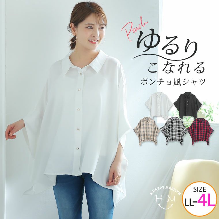 無地とチェックから選べるぽんちょ風シャツ