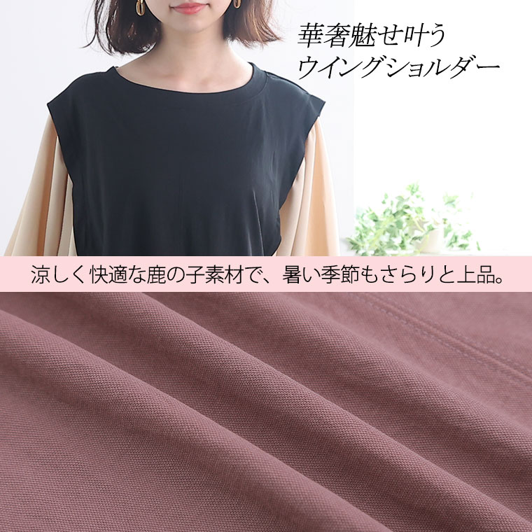 大きいサイズ (接触冷感) 鹿の子×配色 ウィングショルダー プルオーバー