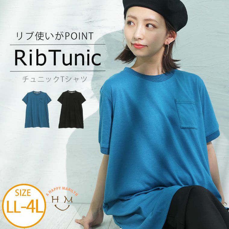 程よい太さのリブデザインがオシャレな胸ポケットチュニックTシャツ