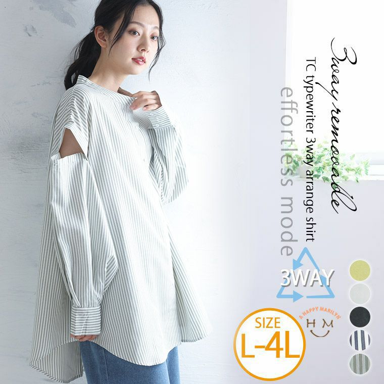 袖のボタンでシルエットが変えられる 3wayTCタイプライターリムーバルスリーブシャツ