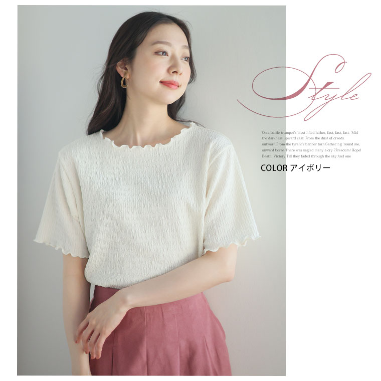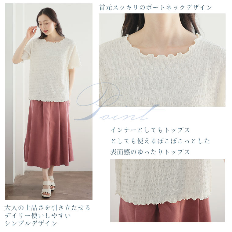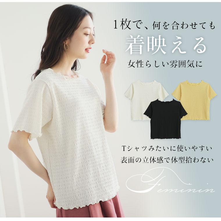 Tシャツみたいに着れる表面の立体感で体型拾わないフェミニントップス