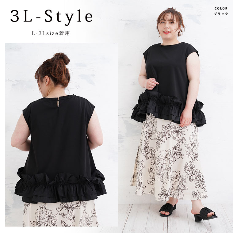 シャツ トップス LL 3L 4L 夏 夏物 夏服 夏用 ぽっちゃり ゆったり カジュアル ナチュラル プラスサイズ 【effortless mode】美人に着映える! 華やぎ スタイルカバー カットジョーゼット フリルヘム ブラウス