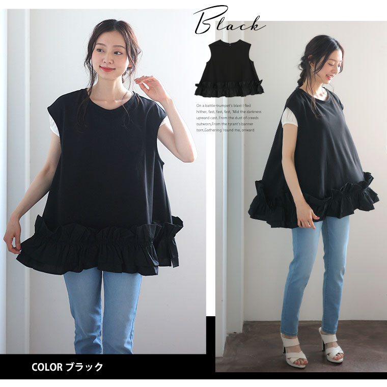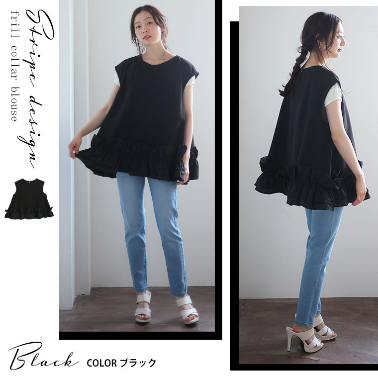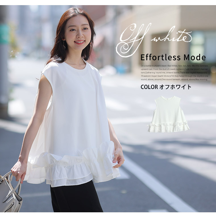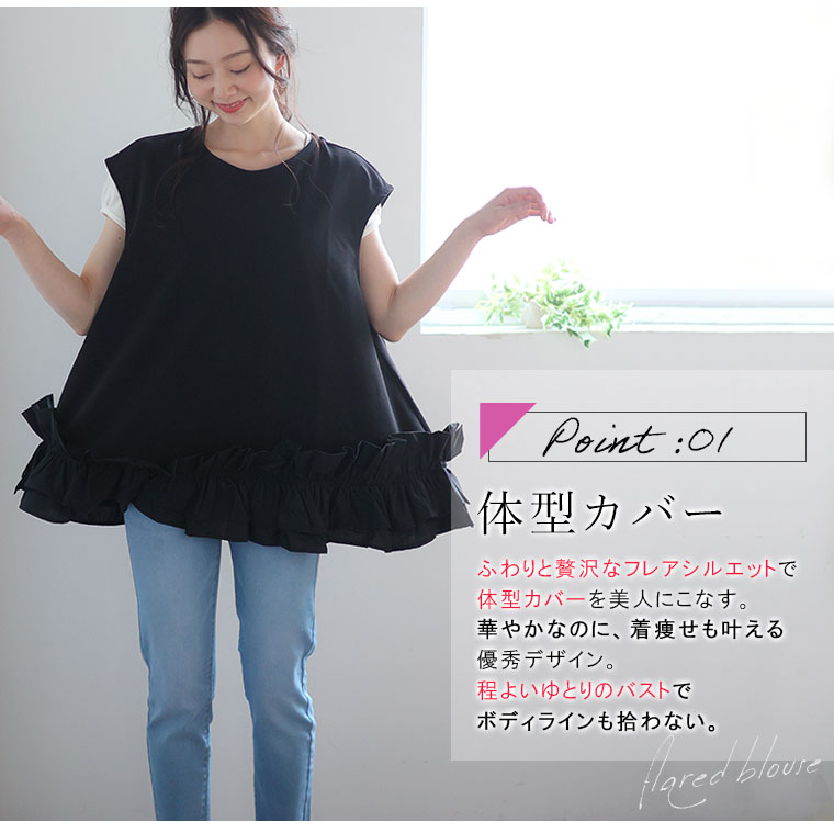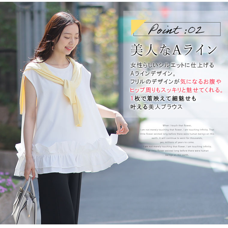 6. 大きいサイズ 【effortless mode】美人に着映える! 華やぎ スタイルカバー カットジョーゼット フリルヘム ブラウス