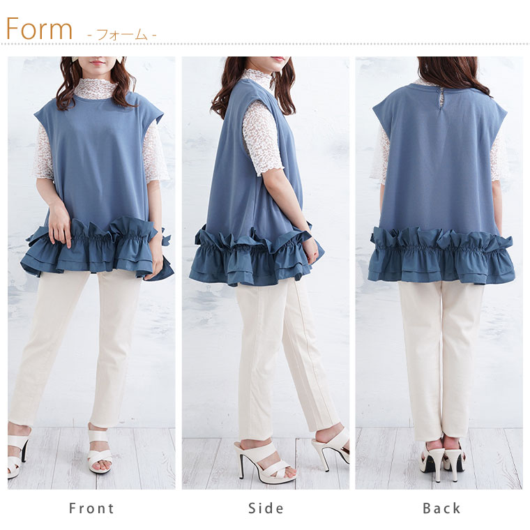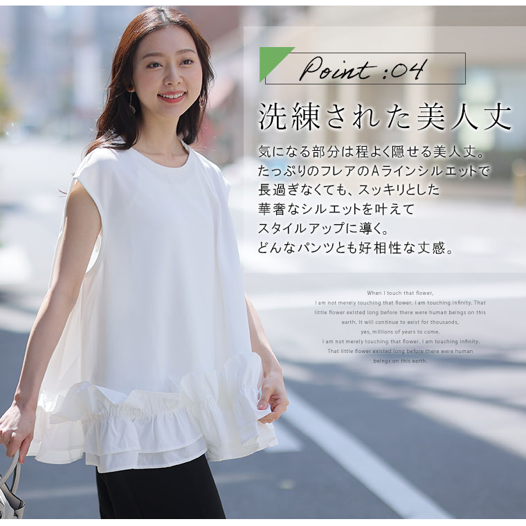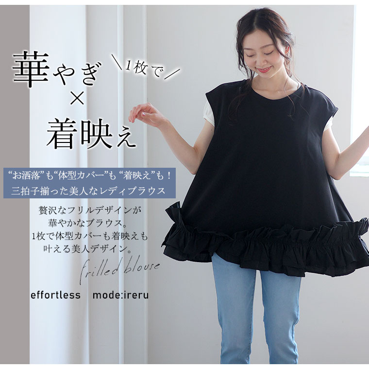 4. 大きいサイズ 【effortless mode】美人に着映える! 華やぎ スタイルカバー カットジョーゼット フリルヘム ブラウス
