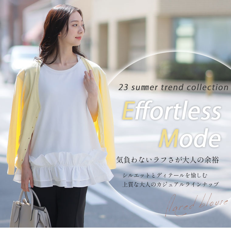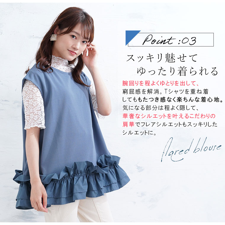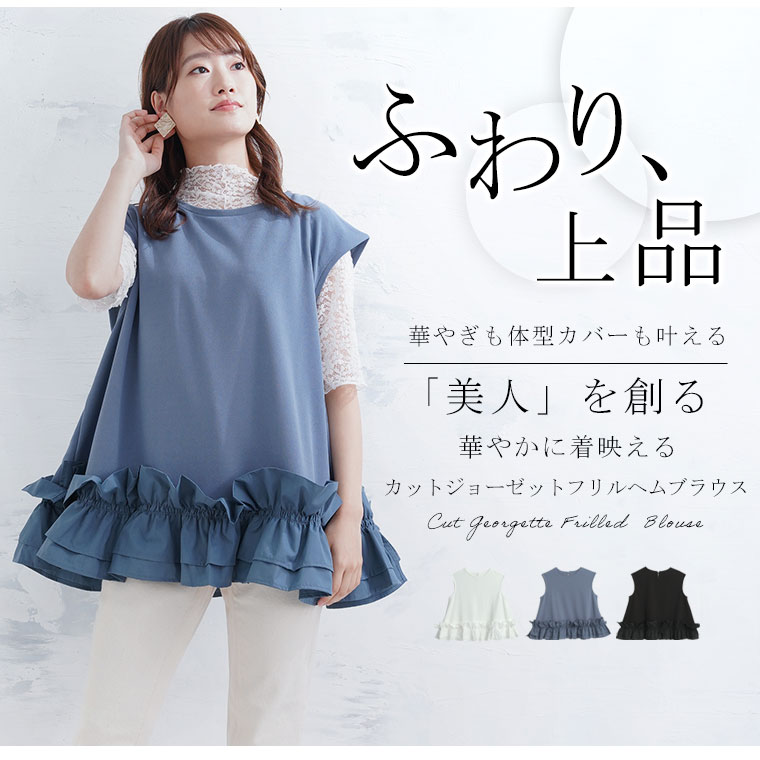 3. 大きいサイズ 【effortless mode】美人に着映える! 華やぎ スタイルカバー カットジョーゼット フリルヘム ブラウス