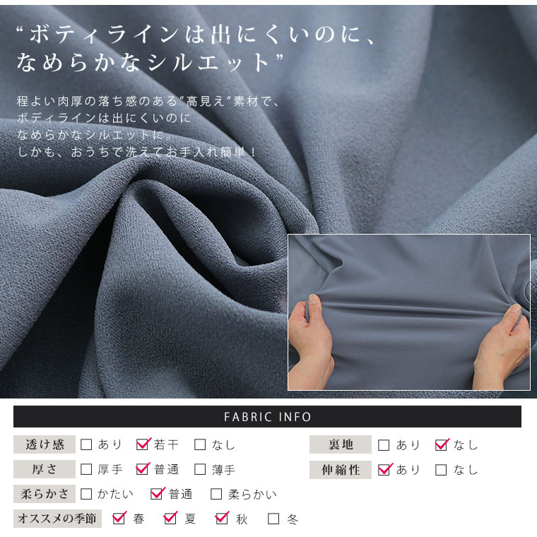 シワにならずハリのある素材で、かなり高見えします!!お腹〜ヒップまですっぽりカバーしてくれるので、着痩せ効果も絶大です! 上品なので、全人類にオススメ!