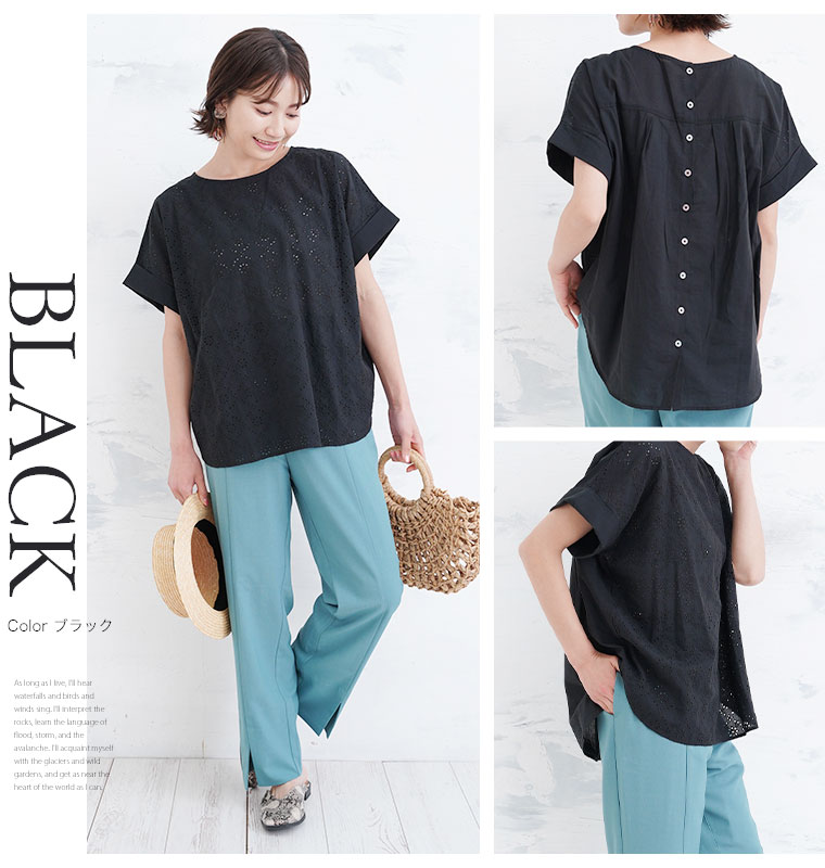 6. 大きいサイズ レース切替 バックボタン ブラウス