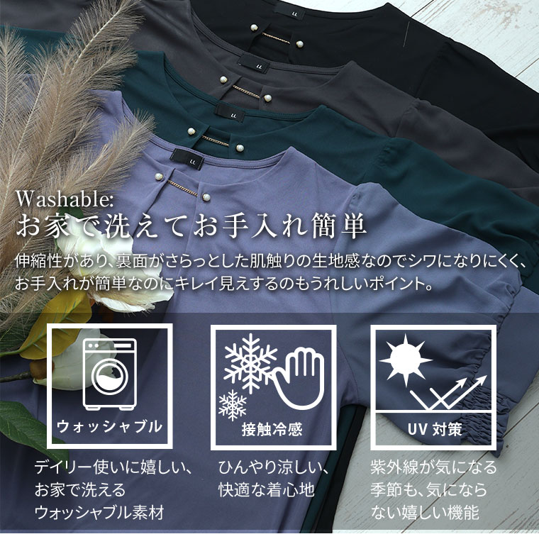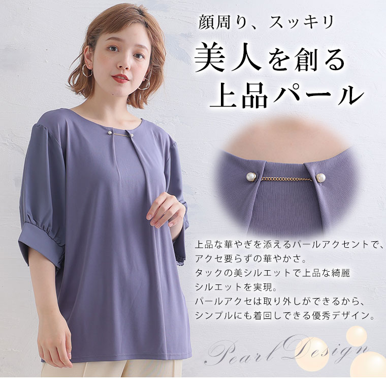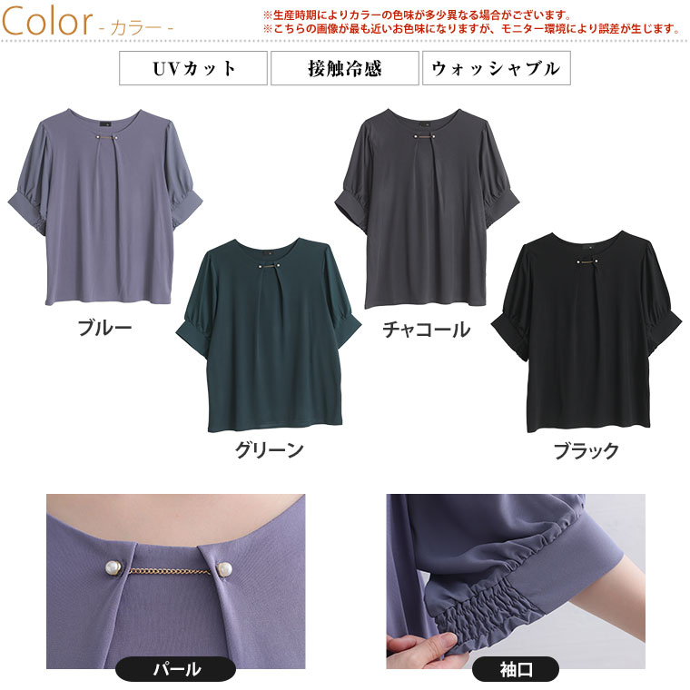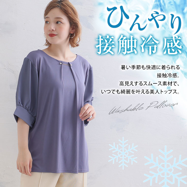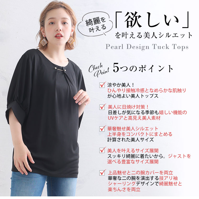 ひんやり快適な着心地!キレイ見せパールデザインTops