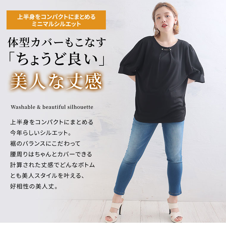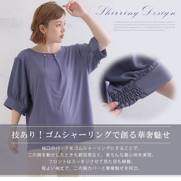 袖のゴムシャーリングで楽ちん&華奢魅せ
