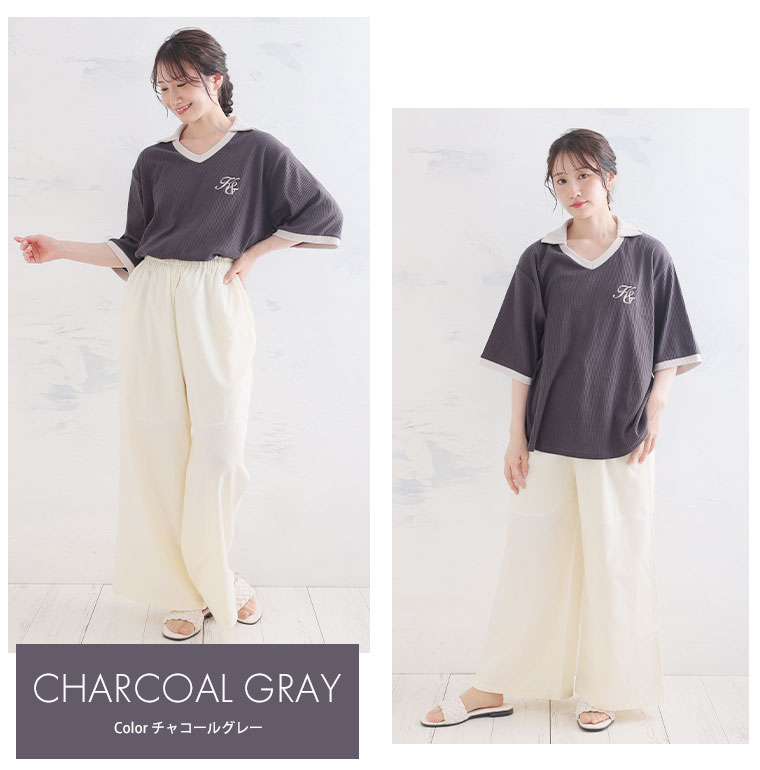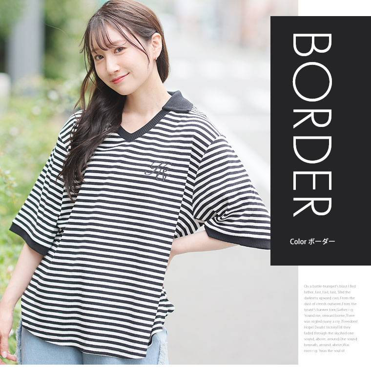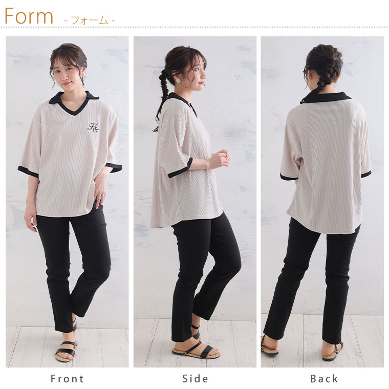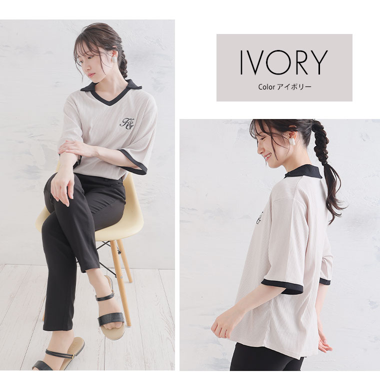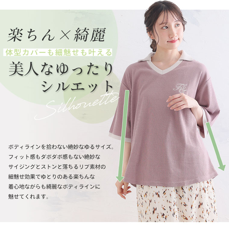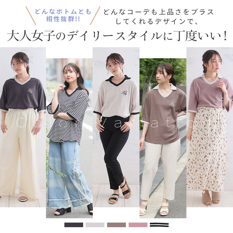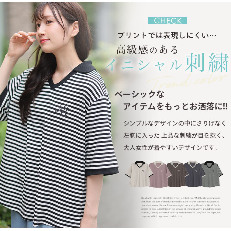 バイカラーが大人かわいい 刺繍ポロシャツ
