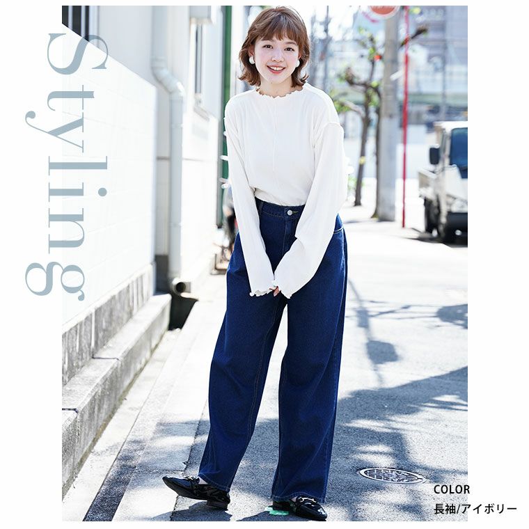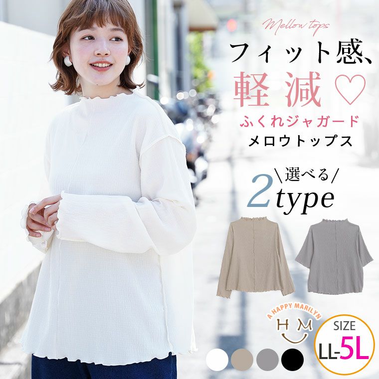 選べる二袖メローデザインふくれジャガードトップス