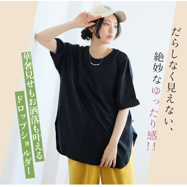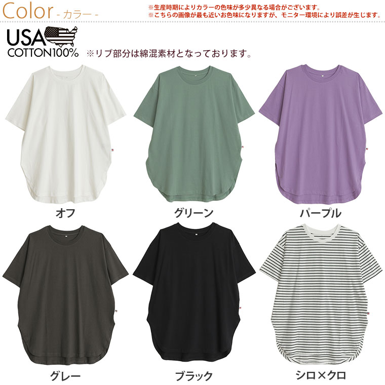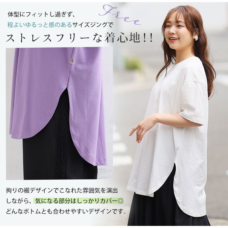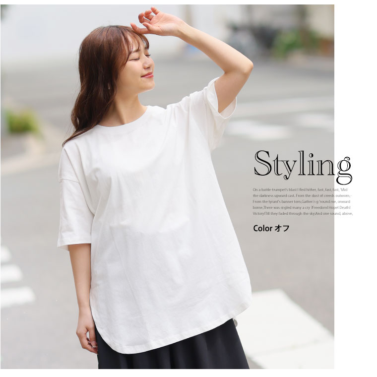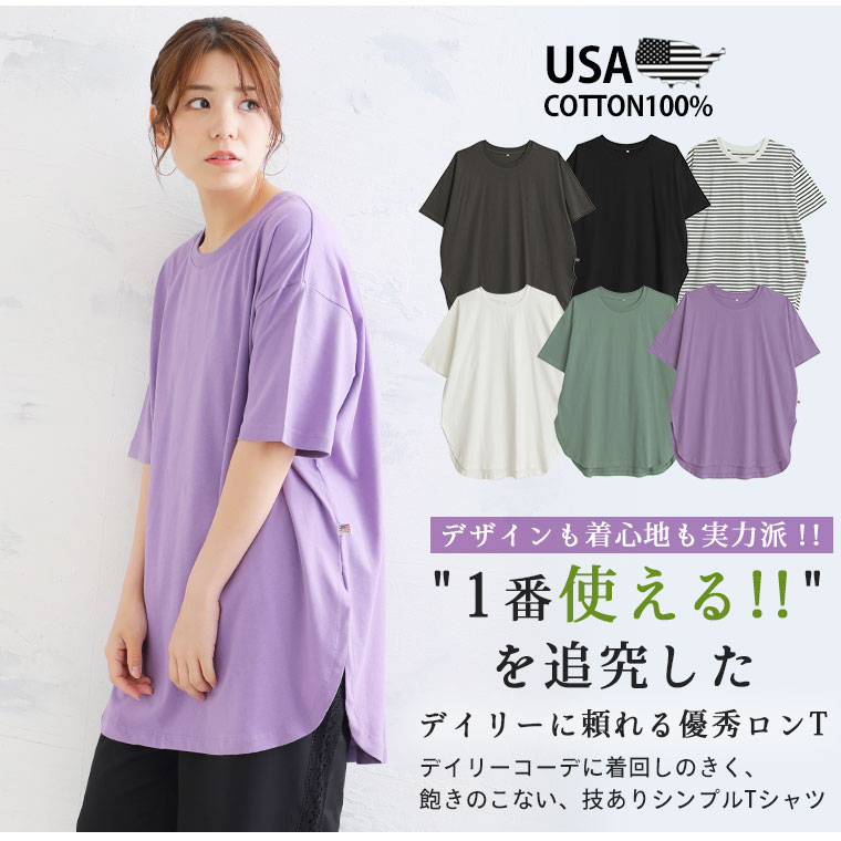 USAコットンでさらりと着れる裾ラウンド五分袖Tシャツ